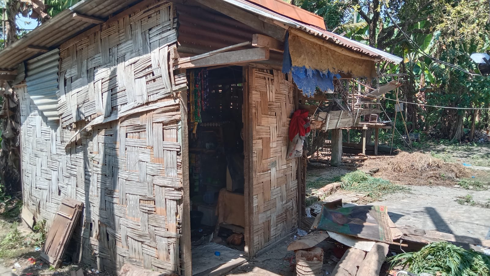 Untuk berteduh, Wak Min menyewa gubuk warga di Dusun 4 Paya Karang, Desa Sei Baharu. Gubuk reot itu berukuran 1,5 meter x 1,5 meter dan bersebelahan dengan kandang kambing.