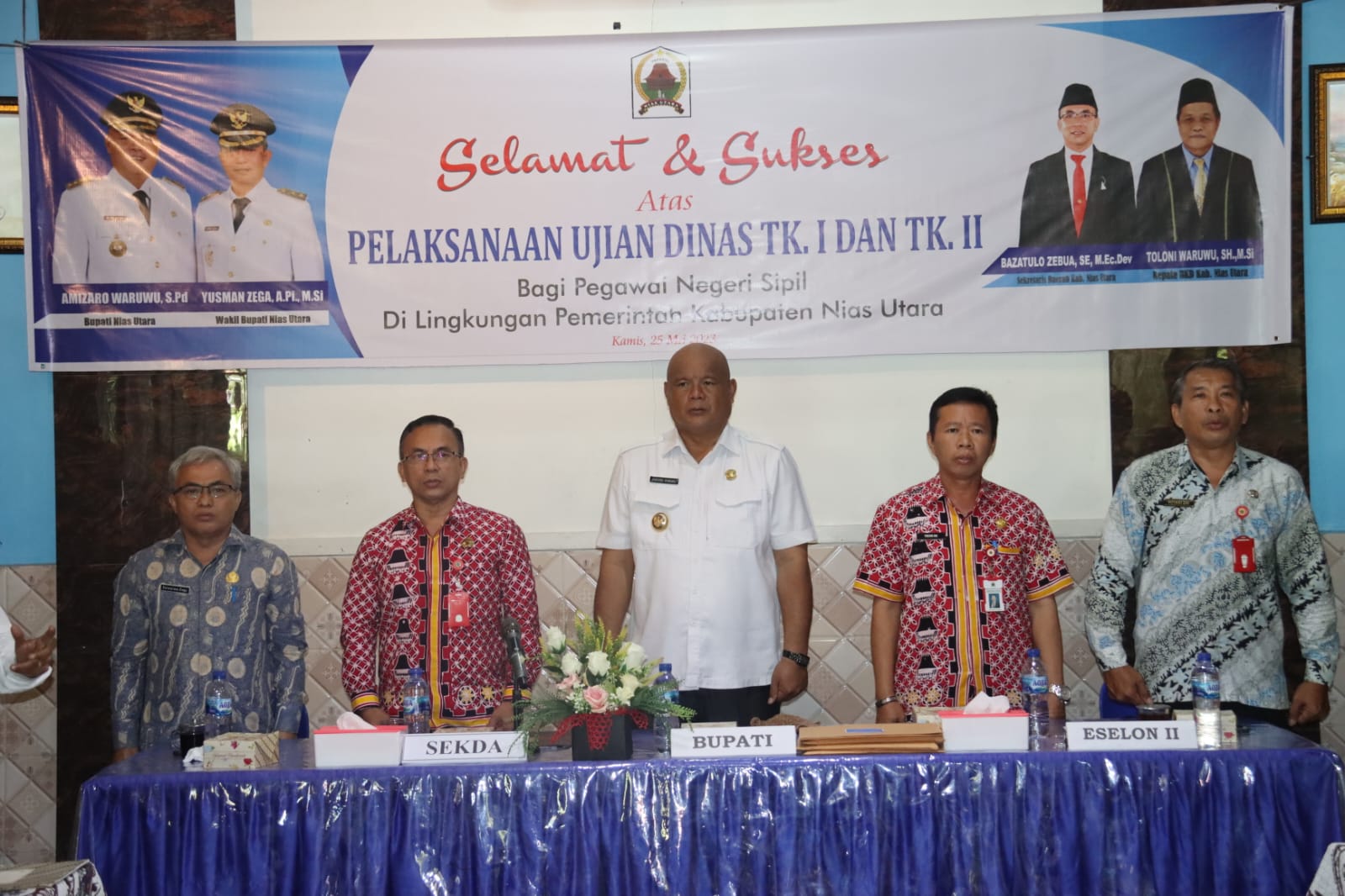 Bupati Nias Utara Amizaro Waruwu, S.Pd dalam arahannya menyampaikan selamat dan sukses atas terlaksananya Ujian Dinas yang dilaksanakan pada hari ini semoga dengan peningkatan golongan ini sembari profesional kita juga didalam melaksanakan tugas, didalam melayani masyarakat ikut meningkat serta ini juga menjadi amanah dalam kehidupan kita sehari-hari dimana pun dan kapan pun kita berada.