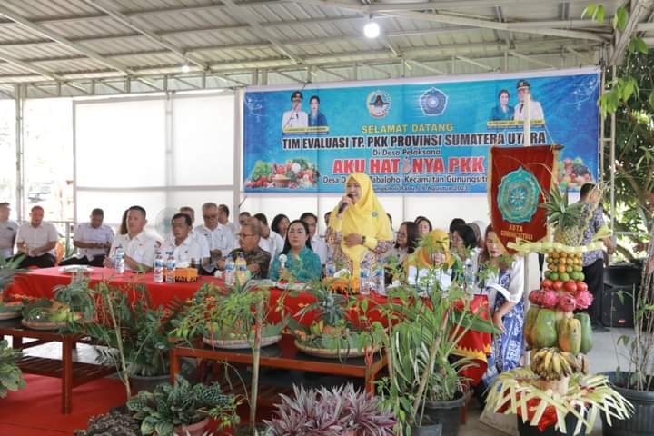 Dalam sambutannya, Wali Kota menyampaikan ucapan syukur atas terselenggaranya dan terpilihnya Desa Dahana Tabaloho sebagai desa yang di evaluasi AKU HATINYA PKK.