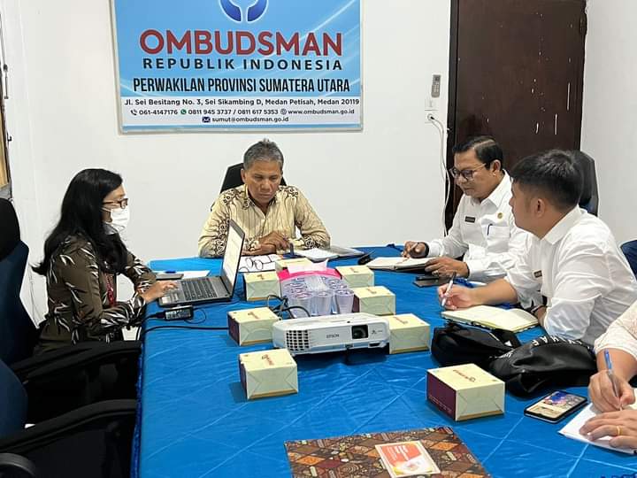 Baraknews Kabupaten Nias Barat, Sumut –Sekretaris Daerah Kabupaten Nias Barat, Sozisokhi Hia,SH.,MM, melakukan Audiensi dan Koordinasi dengan Ombudsman RI Perwakilan Provinsi Sumatera Utara diterima langsung oleh Kepala Perwakilan Ombudsman RI Provinsi Sumatera Utara, Abyadi Siregar, S.Sos., didampingi oleh Kepala Keasistenan Pencegahan Ombudsman RI Perwakilan Provinsi Sumatera Utara, Mory Yana Gultom.