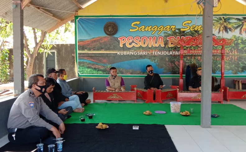 Kedatangan Kasat Binmas beserta Anggota Sat Binmas Polres Majalengka disambut baik oleh Pimpinan Bpk.H.Dr Oman Surahman beserta Pengurus Sanggar seni Pesona Budaya bertempat di blok Kubangsari Desa Tenjolayar Kecamatan Sukahaji Kabupaten Majalengka. Sabtu (19/9/2020).