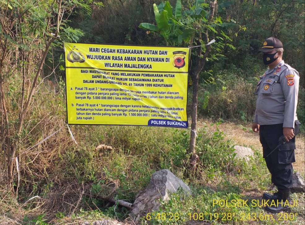 Kapolsek Sukahaji Polres Majalengka IPTU Dadang Supriadi bersama anggota melaksanakan patroli terpadu pencegahan kebakaran hutan dan lahan lingkup kawasan hutan lindung Desa Garawastu Kecamatan Sindang.
