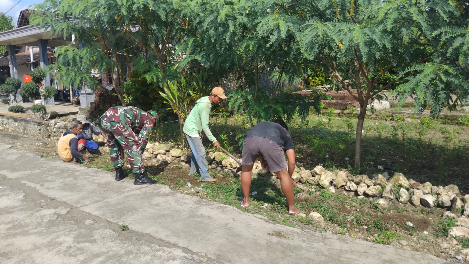Babinsa Desa Dawuhan Sertu Fanda Bersama Warga Gelar Kerja Bakti Bersihkan Lingkungan