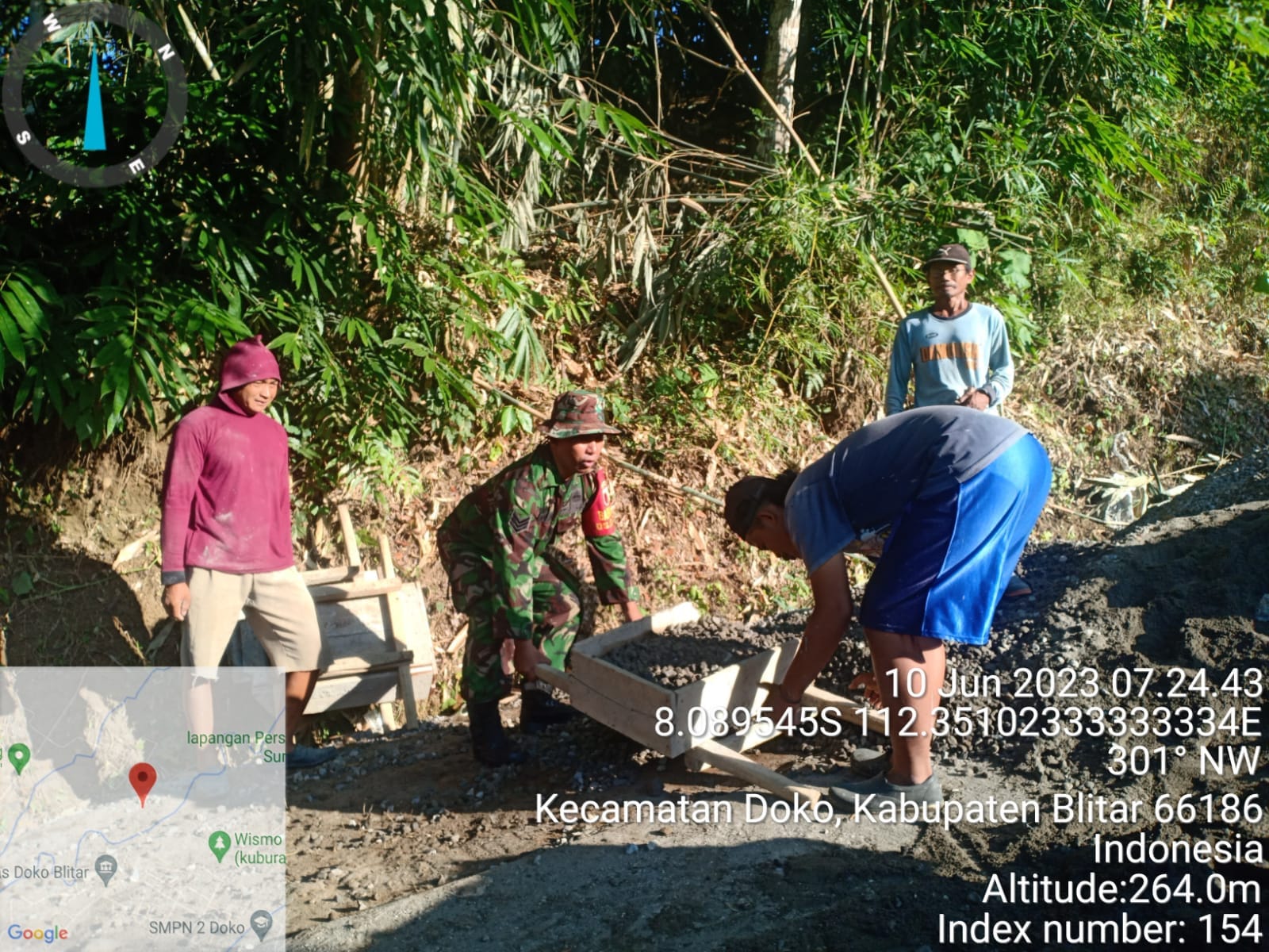 Seperti terlihat saat ini, Serka Andi Heriyanto bersama warga masyarakat saling bergotong royong, bekerja sama untuk melaksanakan kegiatan kerja bakti rabat jalan, bertempat di Dusun Badran Desa Suru Kec. Doko Kab. Blitar, Sabtu (10/6/2023).