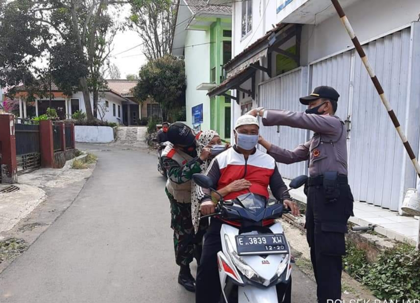Berita MaPolres Majalengka’— Jajaran Polsek Banjaran Polres Majalengka bersinergi dengan unsur Forkompimcam Kecamatan Banjaran menggelar operasi Yustisi penggunaan masker di Wilayah Kecamatan Banjaran Kabupaten Majalengka, Jumat (11/09/2020).