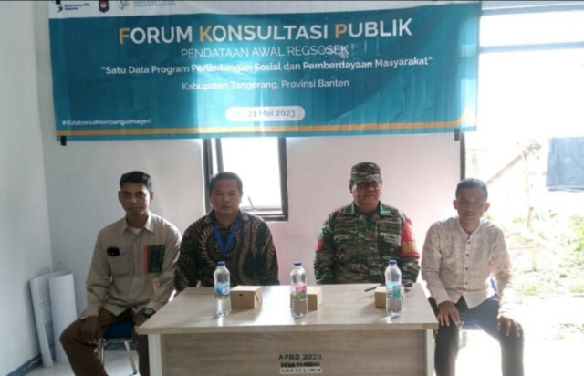 Baraknews Kodam Jaya, Tigaraksa – Membantu pemerintah untuk meningkatkan ekonomi masyarakat, Babinsa Koramil 08/Kronjo, Kodim 0510/Tigaraksa Kopka Kusdian bersama Forum Konsultasi Publik (FKP) melakukan pendataan awal Registrasi Sosial Ekonomi (Regsosek) di Aula Kantor Desa Cijeruk Kecamatan Mekar Baru Kabupaten Tangerang, (05/05/2023).