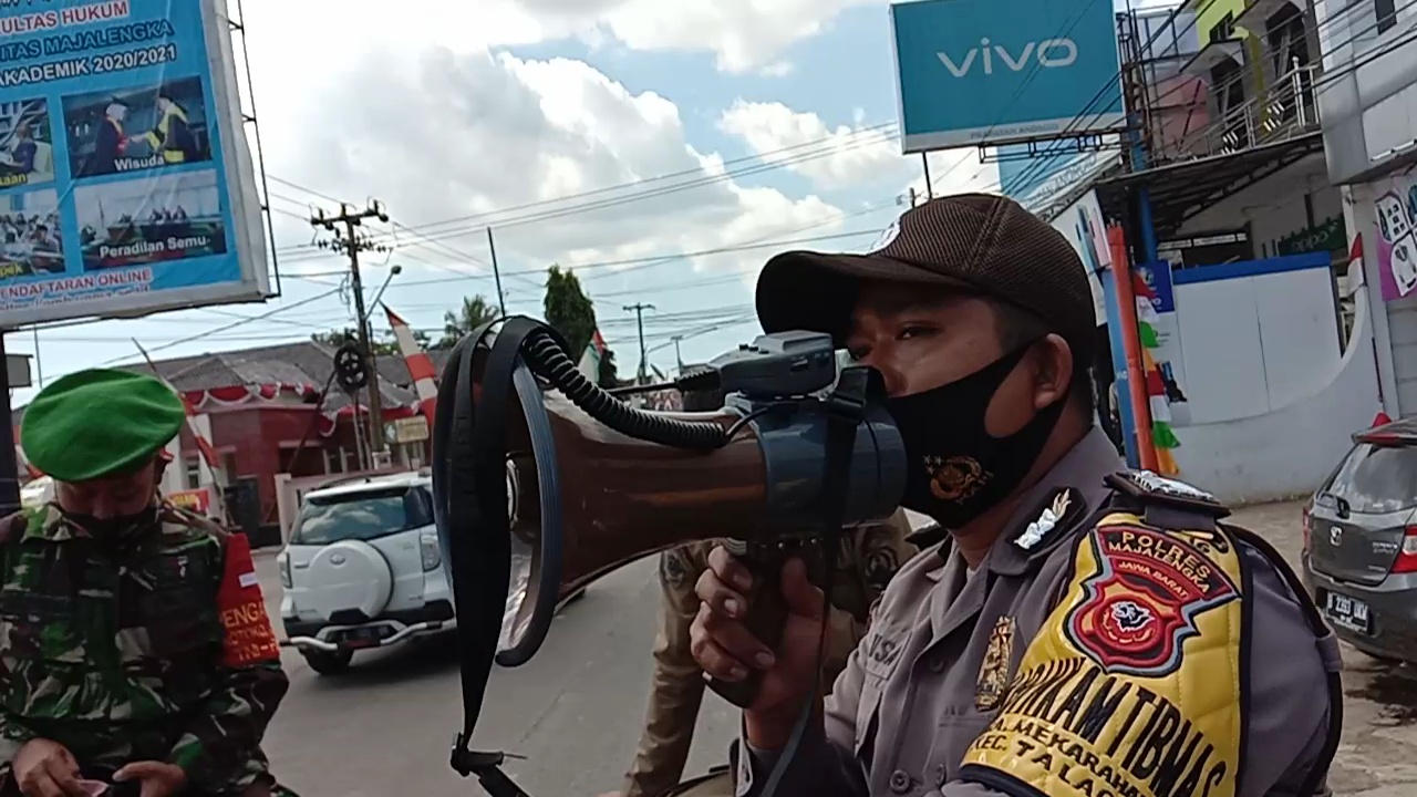 Setidaknya 10 anggota gabungan Polsek, koramil dan Sat pol pp Kecamatan Talaga turun langsung ke jalan datangi para pengguna jalan yang tidak menggunakan masker dan langsung membagikan masker Gratis untuk dipakai guna pencegahan Penularan Covid-19.