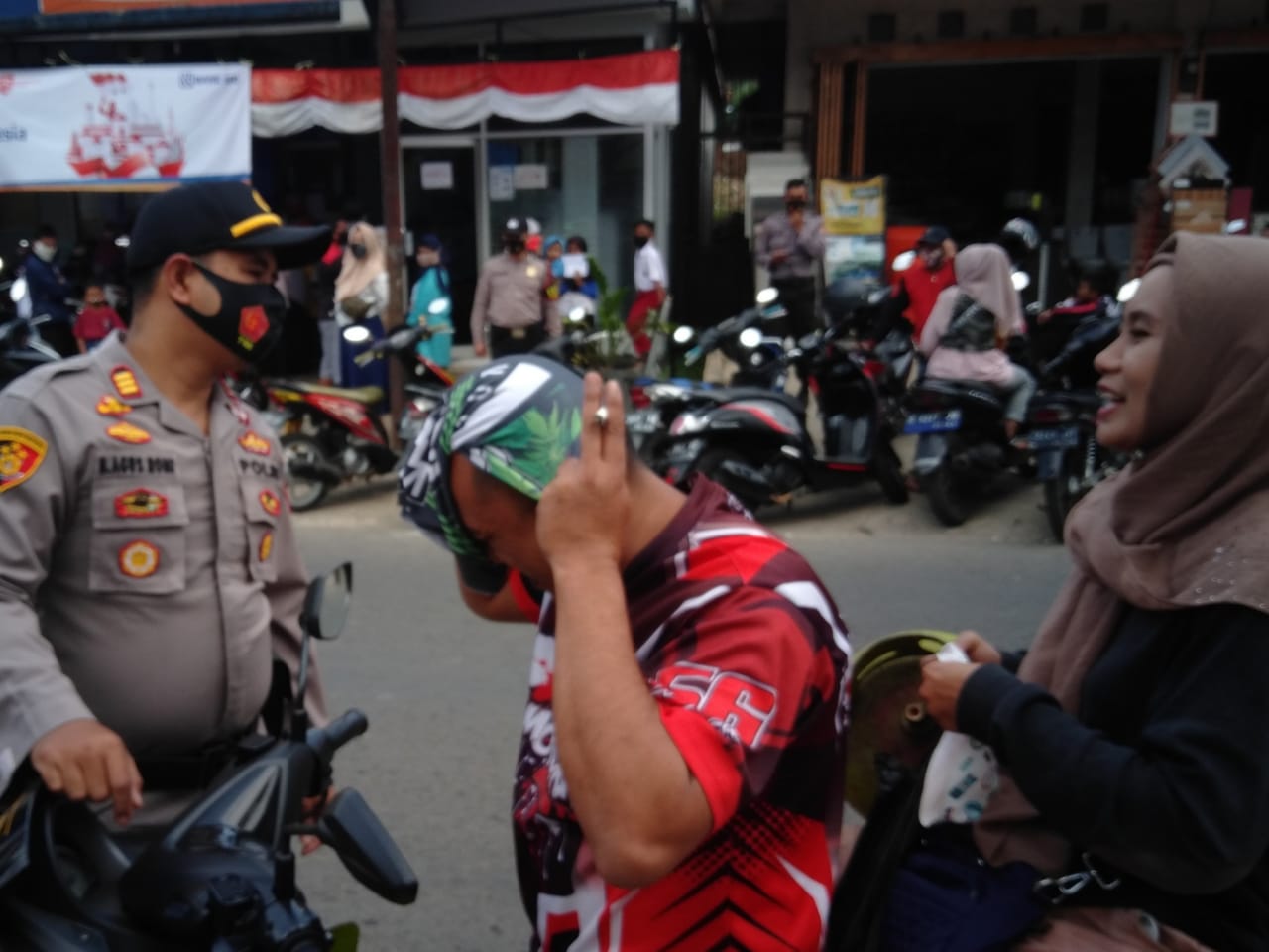 Di samping membagikan masker gratis kepada para warga, pihaknya juga mengedukasi mereka agar menerapkan protokol kesehatan. Diantaranya, dengan saling menjaga jarak, rajin mencuci tangan menggunakan sabun dan hand sanitizer, hingga memakai APD (alat pelindung diri) seperti masker dan sarung tangan ketika berjualan di pasar. Tukas Kapolsek AKP Agus Romy.