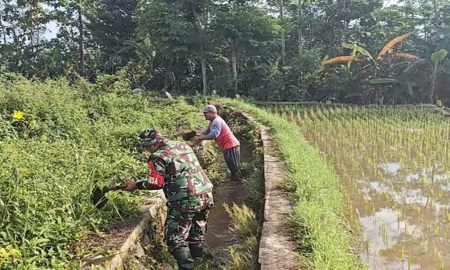 Blitar – Babinsa Desa Ngreco Koramil 0808/21 Selorejo Sertu Yudha bersama warga melaksanakan kegiatan pembersihan saluran irigasi sawah di Desa Ngreco Kecamatan Selorejo Kabupaten Blitar, Rabu (7/1/2026). Kegiatan ini dilakukan sebagai upaya menjaga kelancaran aliran air guna menunjang sektor pertanian masyarakat setempat.