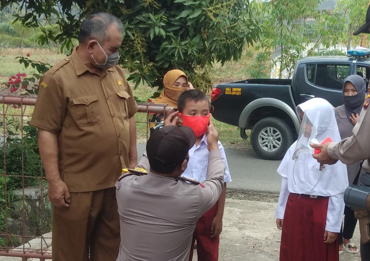 Selain itu Kanit Binmas AIPTU D Yusup bersama Bripka Yosef Mulya Ependi memberikan sejumlah edukasi untuk mencegah penularan covid-19, S memberikan sosialiasi Peningkatan Disiplin Penerapan Protokol Kesehatan Dengan membagikan masker kepada Anak sekolah dengan tujuan mencegah penyebaran virus corona.