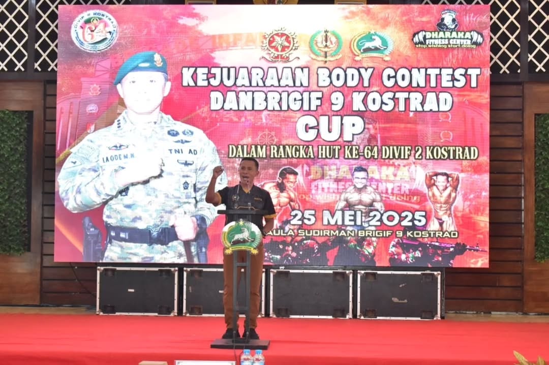 Brigade Infanteri 9 Kostrad menggelar Body Contest Tahun 2025 dalam rangka menyemarakkan HUT ke-64 Divisi Infanteri 2 Kostrad yang diikuti ratusan peserta TNI POLRI dan umum bertempat di Aula Sudirman Brigif 9 Kostrad, Jember, Minggu (25/05/2025).