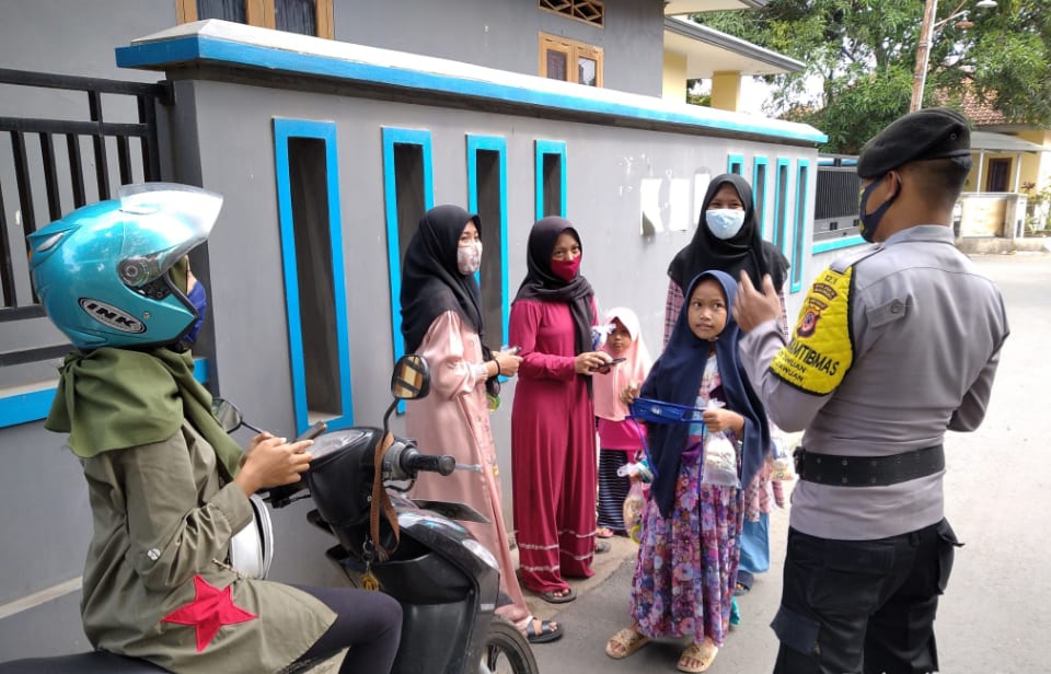 Sosialisasi 3M yang di laksanakan oleh Bhabinkamtibmas Polsek Dawuan Polres Majalengka memberikan himbauan Pencegahan Covid-19 kepada warga Binaannya yang berkerumun dengan selalu menerapkan 3M atau Menggunakan Masker, Mencuci Tangan dan Menajaga Jarak.