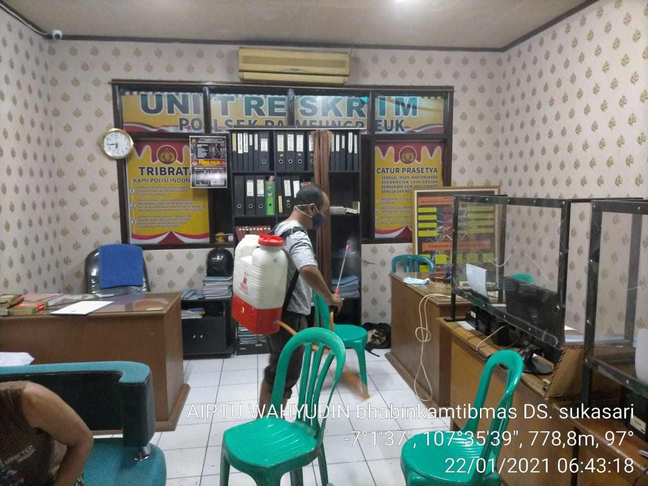 Kapolsek Pameungpeuk AKP Ivan Taufiq SH mengatakan, penyemprotan desinfektan ini dilakukan setiap paginya di beberapa titik pelayanan masyarakat seperti SPK,SKCK dan Ruang Tahanan