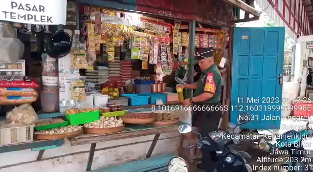 Baraknews Blitar – Babinsa Koramil 0808/01 Sukorejo Kodim 0808/Blitar Serda Didik Subiantoro langsung terjun ke lapangan, untuk melaksanakan kegiatan pengecekan terhadap ketersediaan stok dan harga minyak goreng, khususnya minyak goreng curah yang ada di wilayah binaannya, di Pasar Templek Kel. Kepanjenkidul Kec. Kepanjenkidul Kota Blitar, Kamis (11/5/2023).