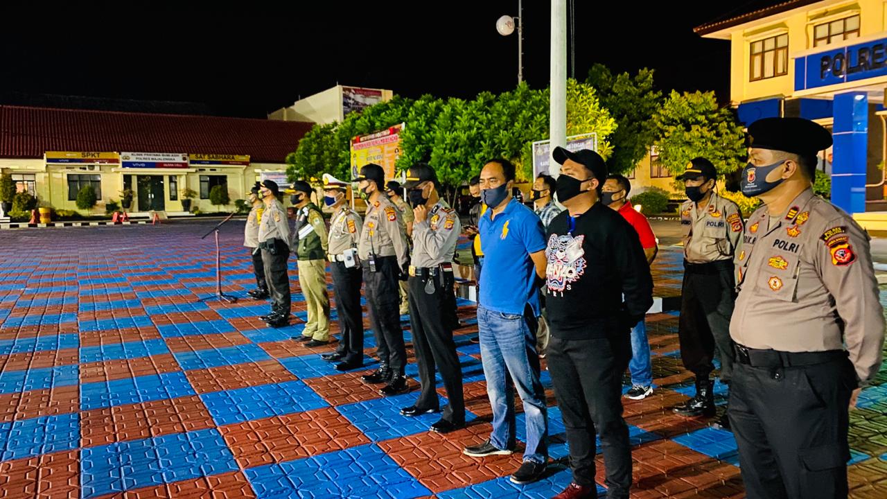 Berita Polres Majalengka-— Gabungan Personil TNI Polri dan Sat Pol PP gelar Apel Kesiapan Patroli malam minggu melalui Kegiatan Rutin Yang Ditingkatkan (KRYD) yang di Pimpin langsung Kabag Ops Polres Majalengka Polda Jabar KOMPOL M.Pardede bertempat di halaman Mapolres Majalengka, Sabtu malam (20/6/2020).
