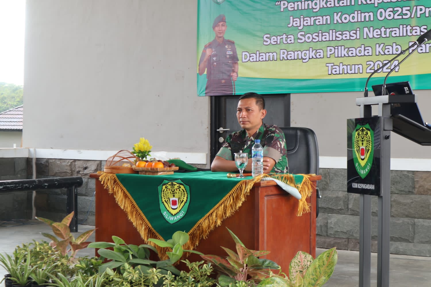 Kodim Pangandaran–Komandan Kodim 0625/Pangandaran, Letkol Inf Indra Mardiyanto Subroto, M.IP, memberikan Jam Komandan kepada seluruh prajurit, PNS, dan Persit di Makodim Jalan Raya Parigi – Cigugur, Cintakarya, Kecamatan Parigi, Kabupaten Pangandaran pada hari Jumat, 19 Juli 2024.