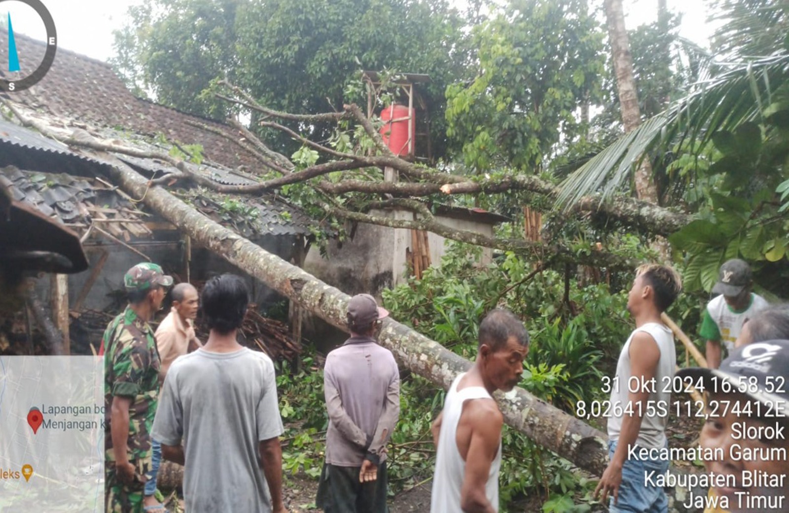 Danramil 0808/02 Garum, Danramil 0808/05 Nglegok dan Danramil 0808/15 Gandusari langsung menerjunkan Babinsa untuk menyisir wilayah masing-masing dan memberikan bantuan kepada warga yang membutuhkan. Hujan deras disertai angin kencang telah menyebabkan beberapa pohon tumbang dan mengakibatkan akses jalan terhambat di beberapa titik. Selain itu, beberapa rumah dilaporkan mengalami kerusakan ringan akibat terpaan angin.