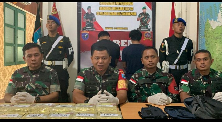 Baraknews Pontianak, Kalbar-Danrem 121/Abw Brigjen TNI Luqman Arief, S.I.P., menggelar Press Release penggagalan upaya penyelundupan Narkoba jenis sabu sebanyak 15 paket seberat kurang lebih 15,910 Kilogram.
