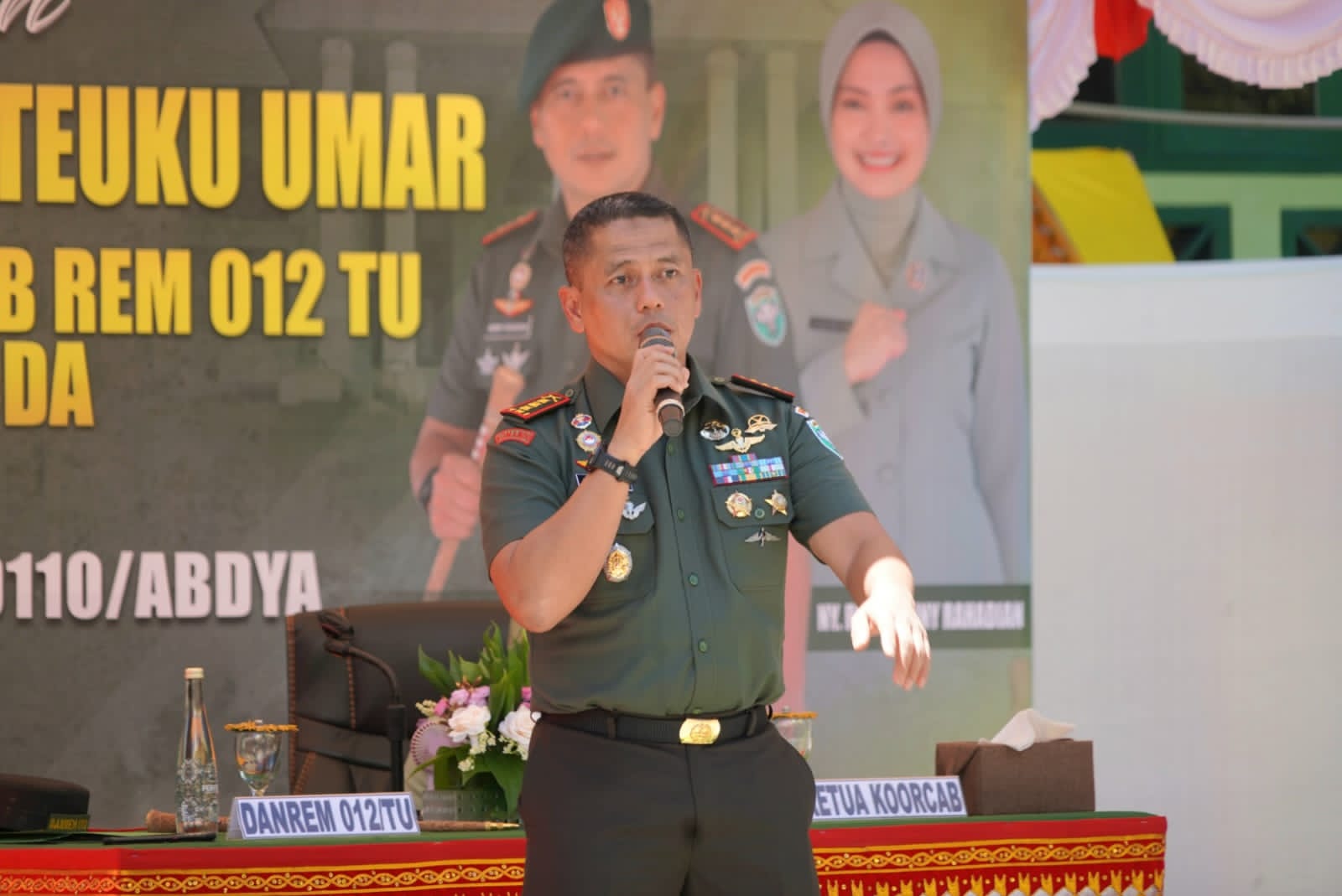 Aceh Barat Daya – Komandan Korem (Danrem) 012/Teuku Umar Kolonel Inf Benny Rahadian, S.E., M.Han mengajak seluruh prajurit dan Persit di lingkungan Kodim 0110/Abdya untuk tetap senantiasa bersyukur kepada Tuhan YME dan enjoy dalam bertugas. Ajakan ini disampaikan Danrem Benny saat memberikan pengarahan kepada prajurit dan Persit dalam agenda kunjungan kerja di Kodim 0110/Abdya, Selasa (22/10/2024).