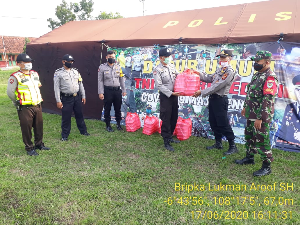 Berita Polres Majalengka –— Dalam Rangka Hari Bhayangkara ke 74 Tahun 2020 hari ke 65 (Enam Puluh Lima) Dapur umum TNI Polri Polres Majalengka Polda Jabar membagikan paket nasi Kotak Sebanyak 200 Paket Nasi Kotak kepada masyarakat terdampak Covid-19. Adapun Dapur Umum TNI-Polri ini dipusatkan kali ini di Alun alun Lapangan Desa Keramat Kecamatan Palasah Kabupaten Majalengka. Rabu (17/6/2020) sore.