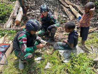 “Peningkatan kesehatan kami lakukan dengan cara mendatangi langsung ke rumah maupun honai, setiap bertemu dengan masyarakat kami berikan pelayanan kesehatan, baik kepada bapak, mama, maupun anak kecil. Kami memberikan pelayanan kesehatan dan obat – obatan kepada masyarakat yang membutuhkan. Kami menyadari keterbatasan akses maupun tenaga kesehatan di Kampung Wombru masih cukup terbatas.” jelas Danpos.
