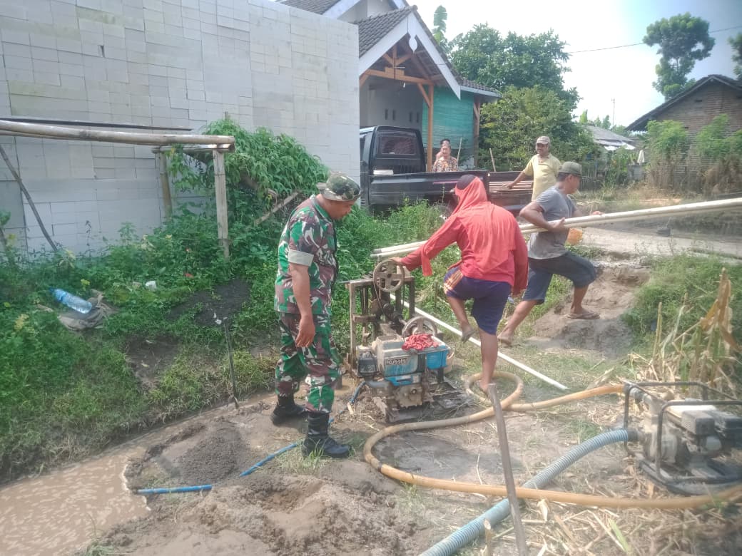 Blitar – Dalam upaya mendukung ketahanan pangan dan mencegah gagal panen, Babinsa Desa Dadaplangu Koramil 0808/07 Ponggok, Serka Marjan, aktif membantu petani mengairi sawah milik warga binaannya. Kegiatan tersebut dilaksanakan di lahan pertanian milik Bapak Sudirman yang berada di RT. 02 RW. 02 Desa Dadaplangu Kecamatan Ponggok, Sabtu (28/3/2026).