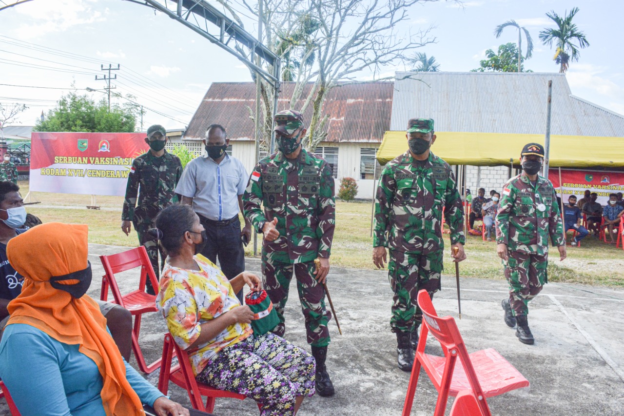 Pangdam XVII/Cenderawasih menyampaikan bahwa Kodam XVII/Cenderawasih beserta jajarannya akan terus gencar melaksanakan vaksinasi Covid-19 gratis bagi masyarakat di seluruh wilayah Prov. Papua guna mendukung program pemerintah, sekaligus mendorong percepatan cakupan vaksinasi Covid-19 dalam rangka mendukung pelaksanaan PON XX Papua.