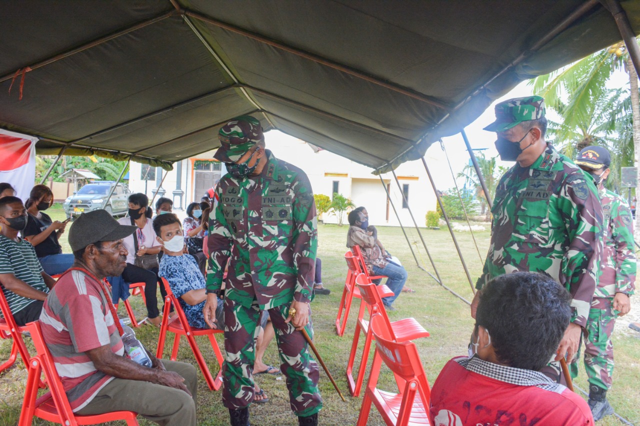 Berita Kab.Jayapura—. Pangdam XVII/Cenderawasih Mayjen TNI Ignatius Yogo Triyono, M.A., meninjau secara langsung Serbuan Vaksinasi Kodam XVII/Cenderawasih di halaman Gereja Kristen Injil di Tanah Papua Klasis Keerom Jemaat Antiokhia Distrik Arso 2, Kab. Keerom, Kamis (9/9/2021).