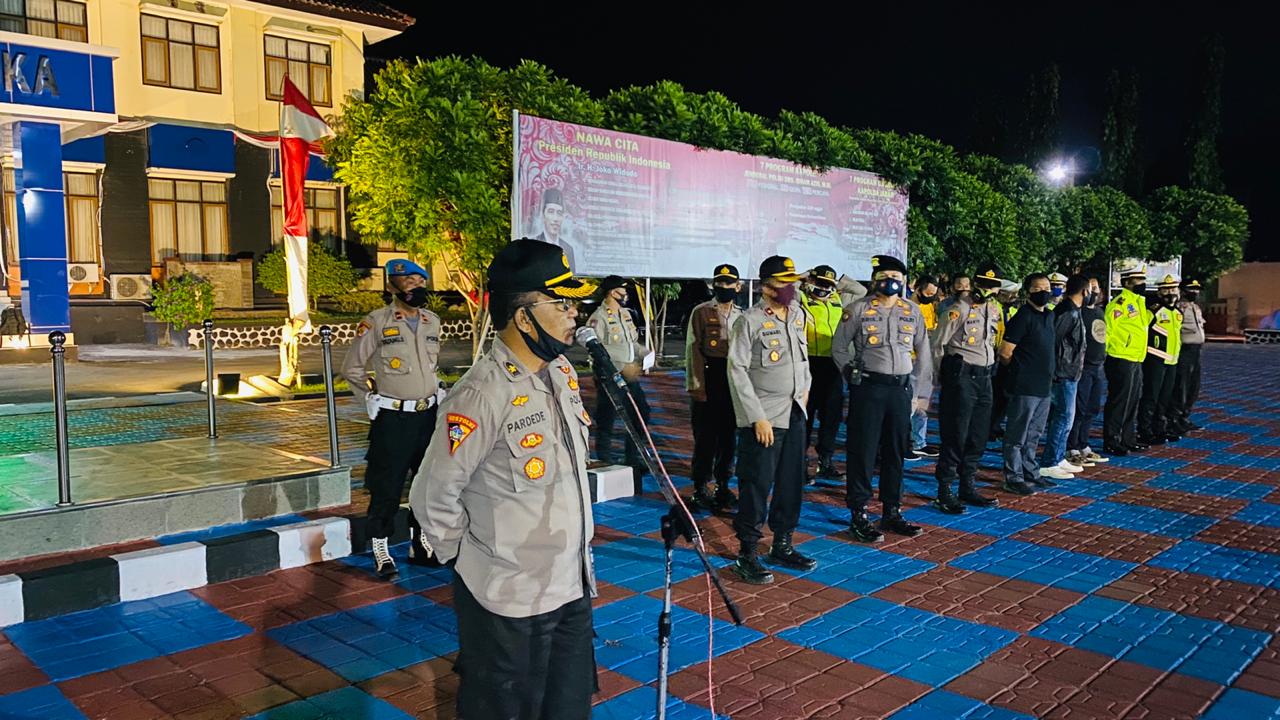 Berita MaPolres Majalengka--‘ Gabungan Personil TNI Polri dan Sat Pol PP gelar Apel Kesiapan Patroli malam minggu melalui Kegiatan Rutin Yang Ditingkatkan (KRYD) yang di Pimpin langsung Waka Polres Majalengka KOMPOL Sumari didampingi Kabag Ops KOMPOL M. Pardede bertempat di halaman Mapolres Majalengka, Sabtu malam (11/7/2020).