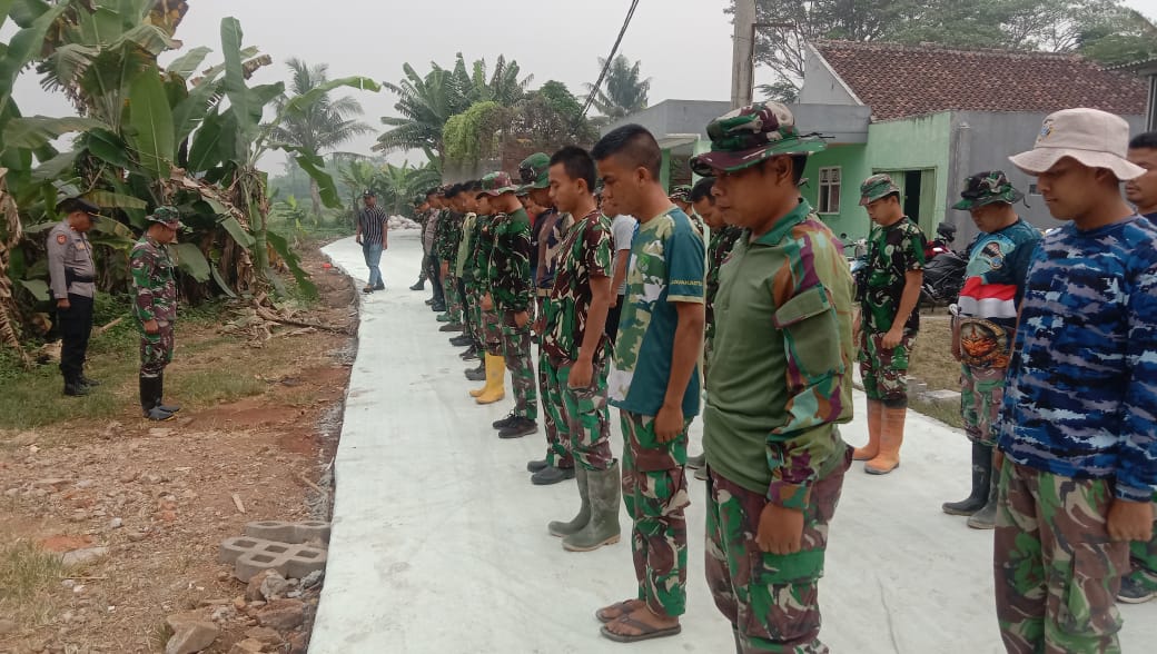 Dalam pelaksanaanya terlihat kompak dan penuh semangat dalam melaksanakan kegiatan apel pagi bersama personil satgas TMMD dan Personil Polsek legok.