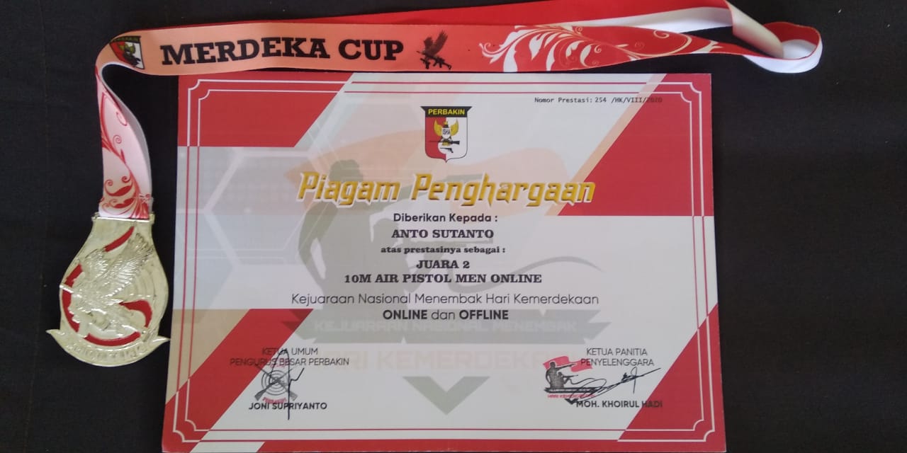 Pada Kejuaraan Menembak Hari kemerdekaan 10M Air Pistol Men Online dan Juara 2 pada Kejuaraan Nasional Menembak Piala Panglima TNI Tahun 2020 Online dan Offline 25m Standart Pistol men online, Senin (30/11/2020).