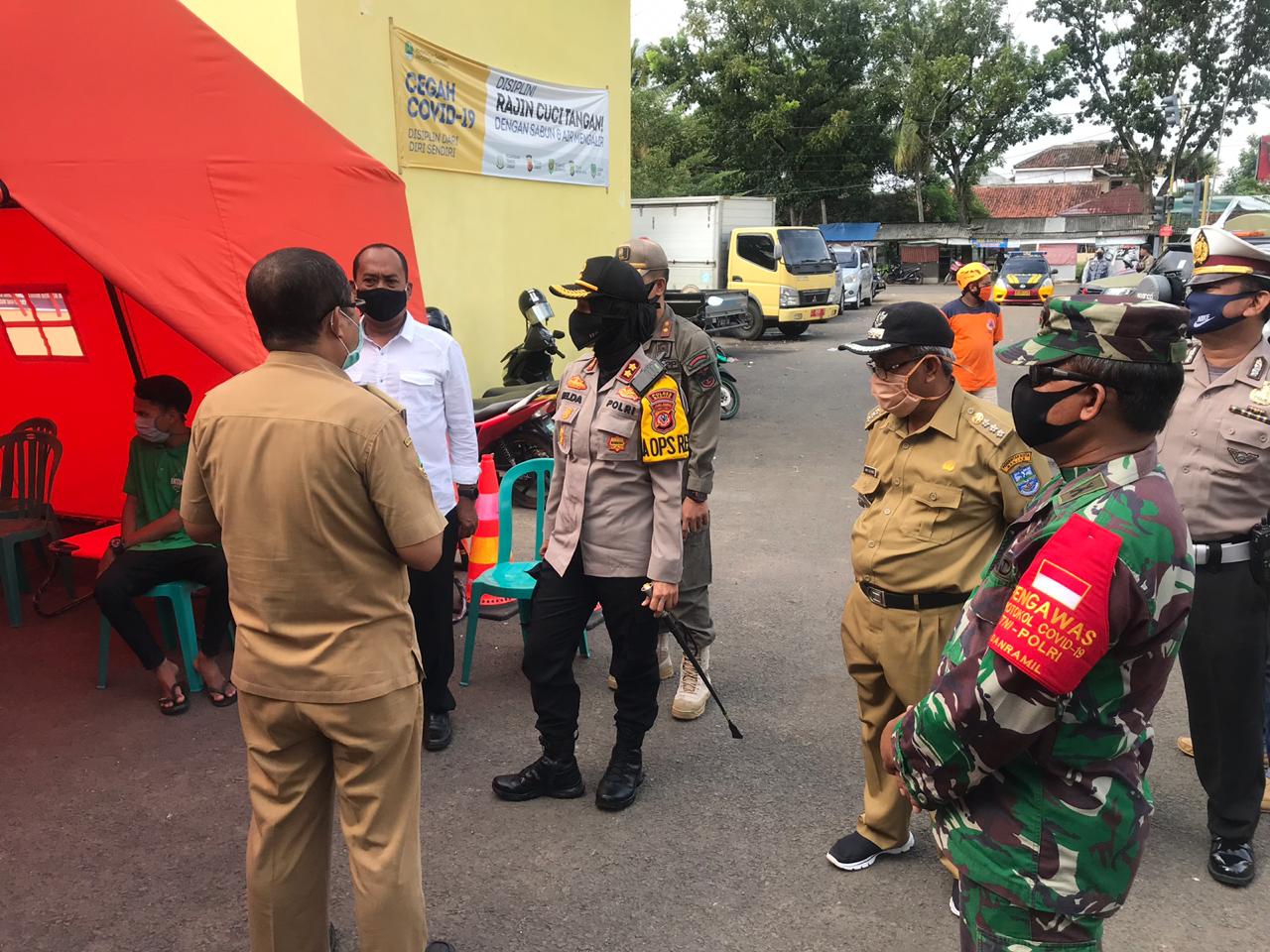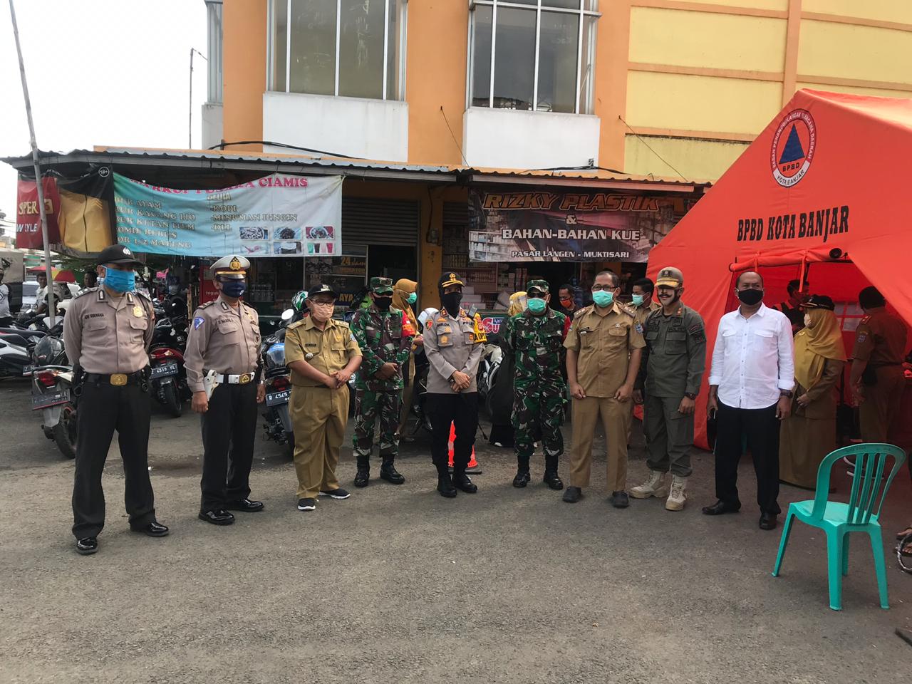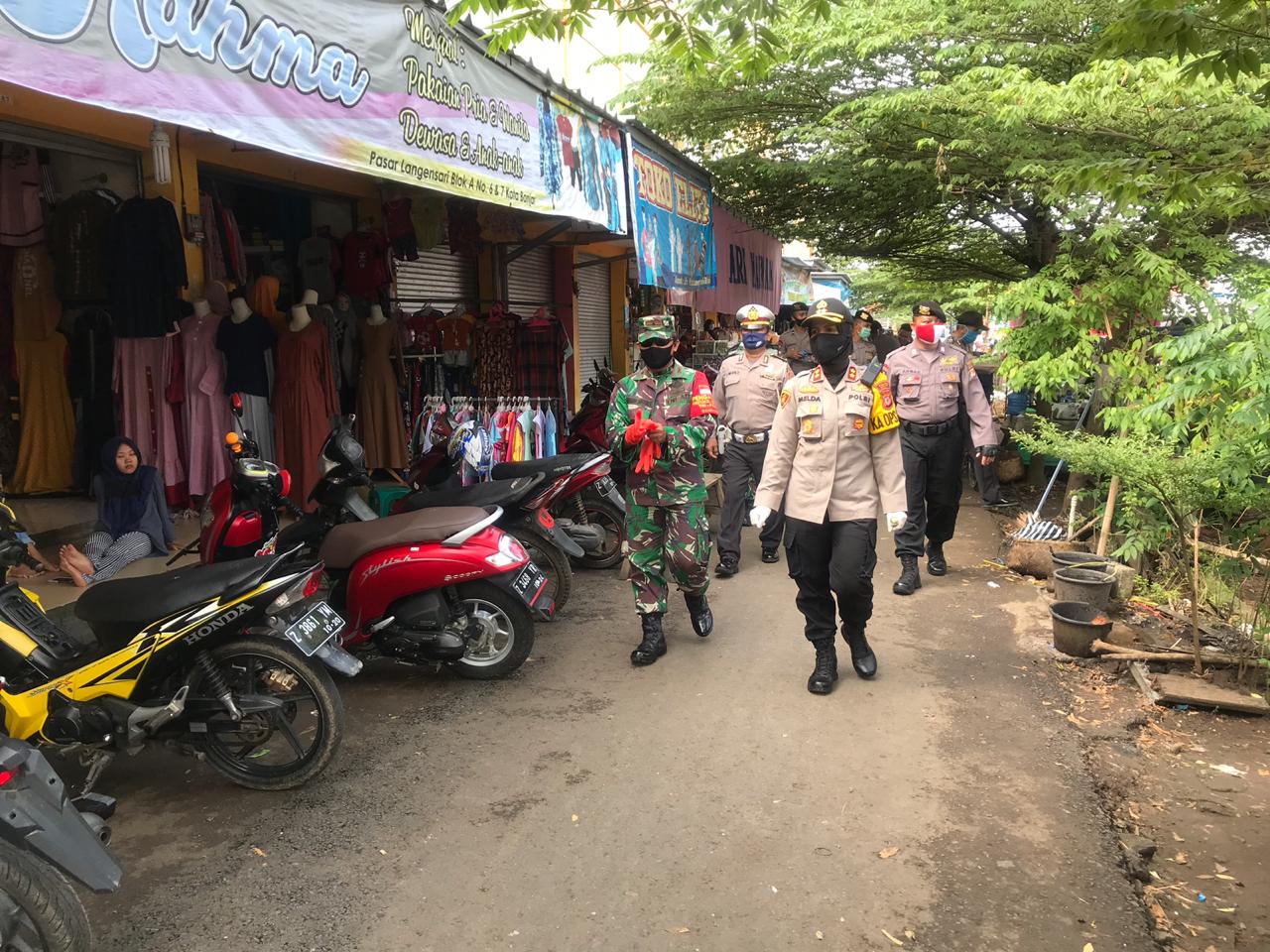 Berita Kota Banjar — Woro-woro Kepolisian Resor Banjar beserta TNI kepada para pedagang dan masyarakat yang sedang transaksi jual beli di Pasar Langensari Kota Banjar. 22/06/2020.