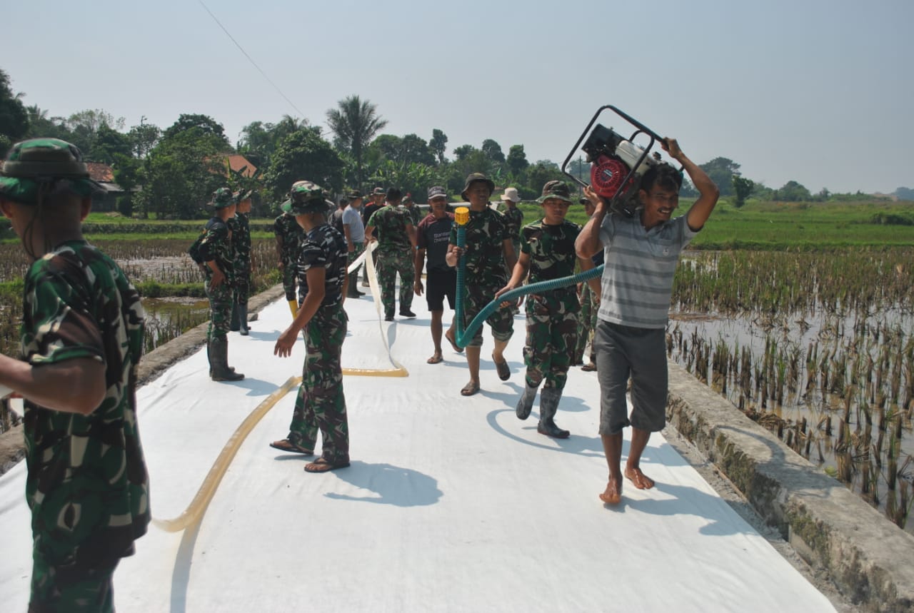 Kapten Inf Arja Suarja menambahkan, ini upaya menjaga kualitas jalan hasil pengecoran karena jalan itu akan dilewati untuk aktivitas warga masyarakat.