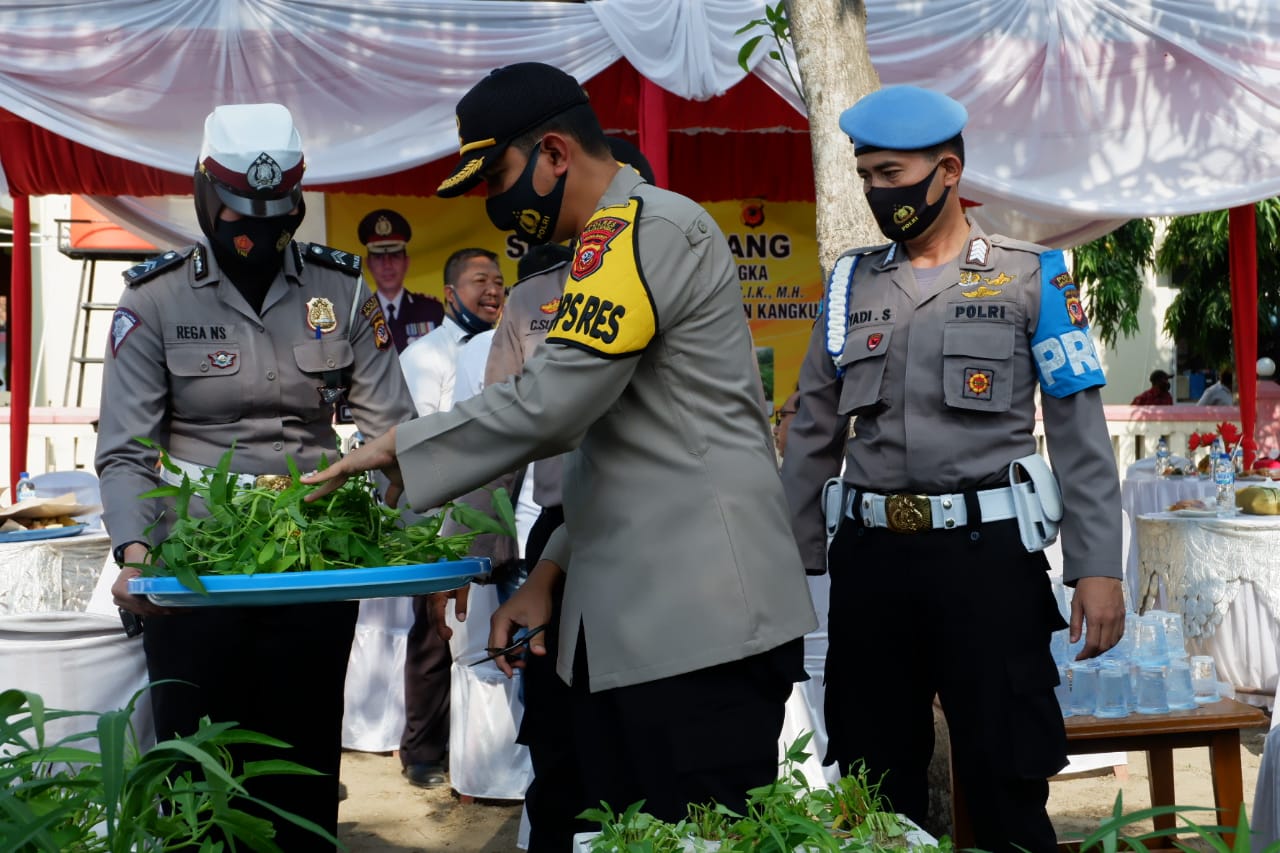 Berita Mapolres Majalengka-– Kapolres Majalengka AKBP Dr. Bismo Teguh Prakoso didampingi Kapolsek Ligung AKP Umang,S.H melaksanakan panen sayuran kangkung dan Budidaya Ikan lele yang bertempat di lingkungan Mapolsek Ligung Polres Majalengka, Rabu (26/8/2020).