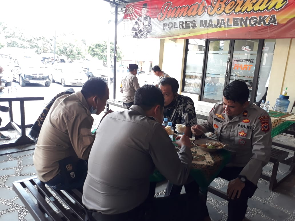 Berbaur dengan anggotanya, Kapolres Majalengka duduk bersama untuk makan bersama sekaligus Program Jum’at Berkah. Kegiatan ini dilaksanakan secara rutin dan sederhana di halaman Primkoppol Polres Majalengka, seluruh personil tampak sangat gembira menyantap hidangan tersebut dan juga hadir tokoh agama untuk menjalin tali silaturahmi.