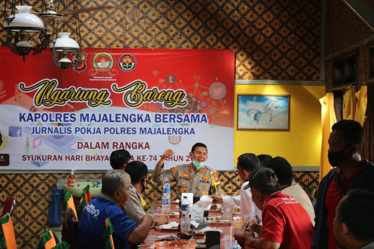 Berita Mapolres Majalengka –– Di momen Hari Bhayangkara ke-74, Kepolisian Resor Majalengka, Polda Jawa Barat, menggelar “Ngariung Bareng” bersama sejumlah awak media, yang tergabung dalam Pokja Jurnalis Polres Majalengka.