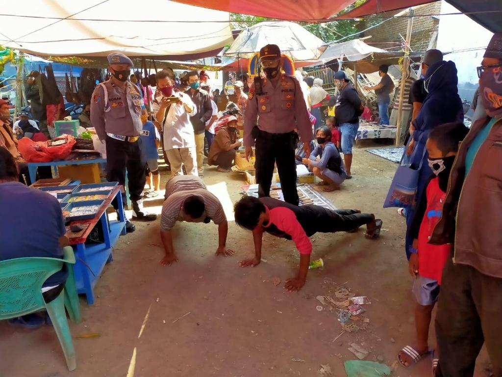 Yang menarik dalam operasi yustisi pagi tadi di pasar Rajagaluh dimana beberapa pedagang maupun pengunjung pasar yang tidak menggunakan masker dilakukan penindakan dengan memberikan tindakan secara tertulis melalui blanko teguran dan ada juga dilakukan Push Up.