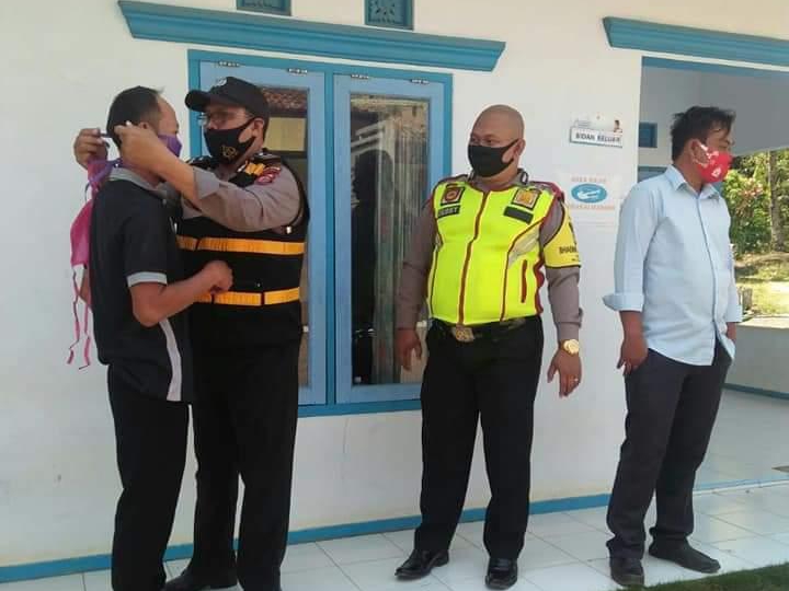 Sosialisasi 3M yang dipimpin langsung oleh Kanit Binmas Aiptu A.Munawar  tersebut disertai pembagian masker kain kepada warga yang di sambanginya di desa Cidadap kecamatan Cingambul kabupaten majalengka.