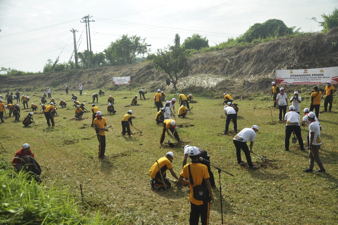 Sebanyak 2000 bibit tanaman berbagai jenis pohon, ditanam di Daerah Aliran Sungai (Bantaran) Sungai Citanduy, secara serentak Kapolres Banjar dengan BBWS Citanduy yang diwakili Kabag TU/Kabag Umum Ir Kristian Simak, M.Si beserta personil Polres Banjar dan personil BBWS Citanduy, serta para Bhabinkamtibmas di wilayah masing-masing serentak melaksanakan penanaman pohon.