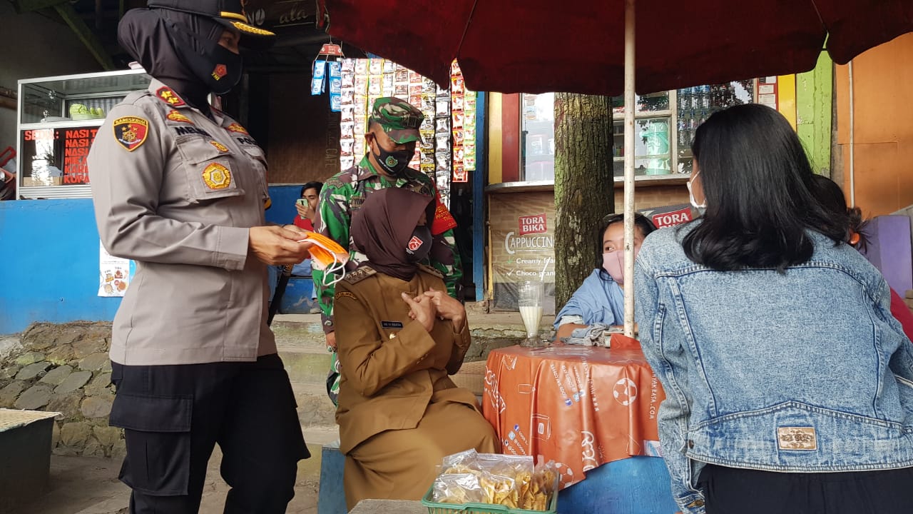 Kali ini Kapolres Banjar AKBP Melda Yanny, S.I.K.,M.H. bersama Walikota Banjar Dr. Hj. Ade Uu Sukaesih, M.Si. dan Danramil 1313/Banjar Kapt. Arm. Yuni Aryadi bersama-sama woro-woro di rest area Banjar Atas Kota Banjar menyampaikan dan mengingatkan protokol kesehatan kepada masyarakat yang sedang beristirahat di Banjar Atas tersebut.