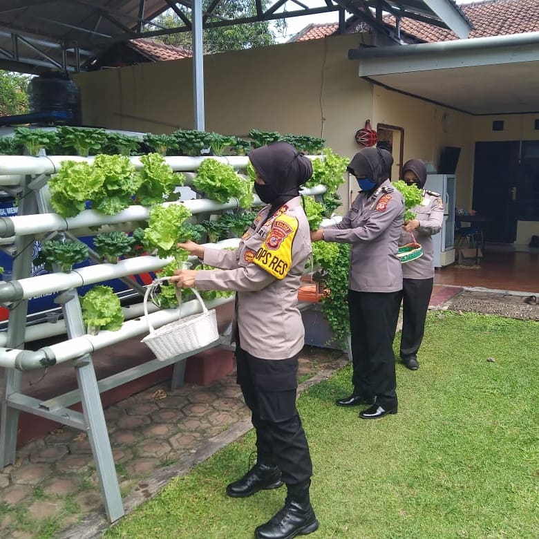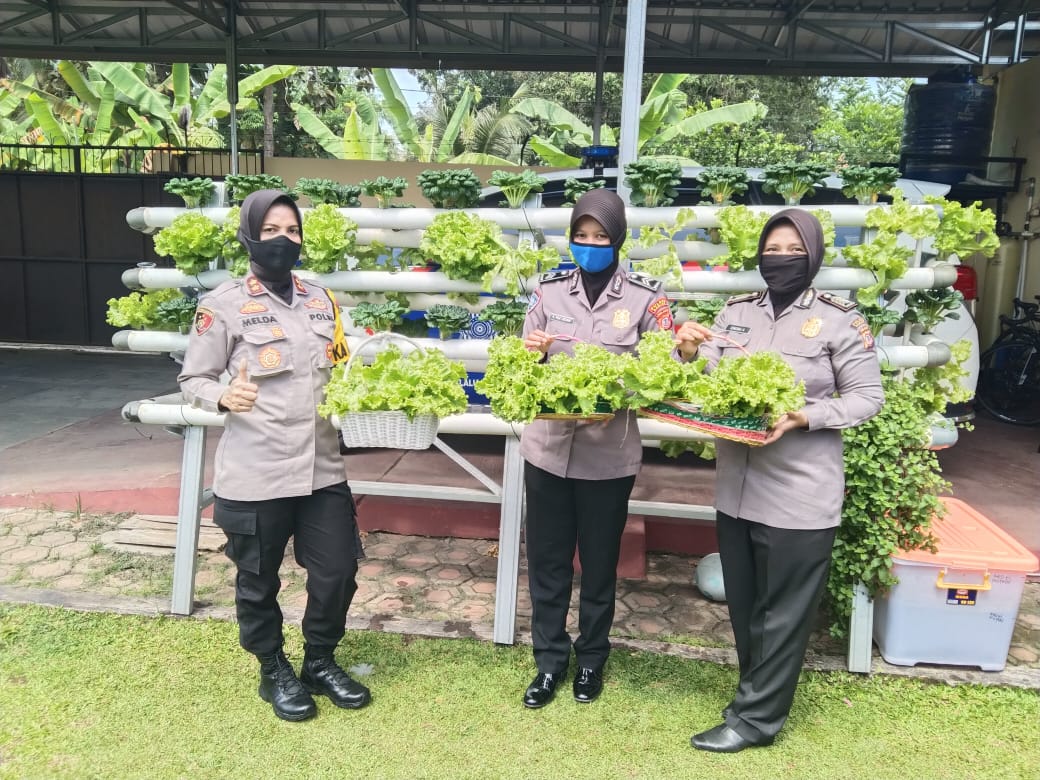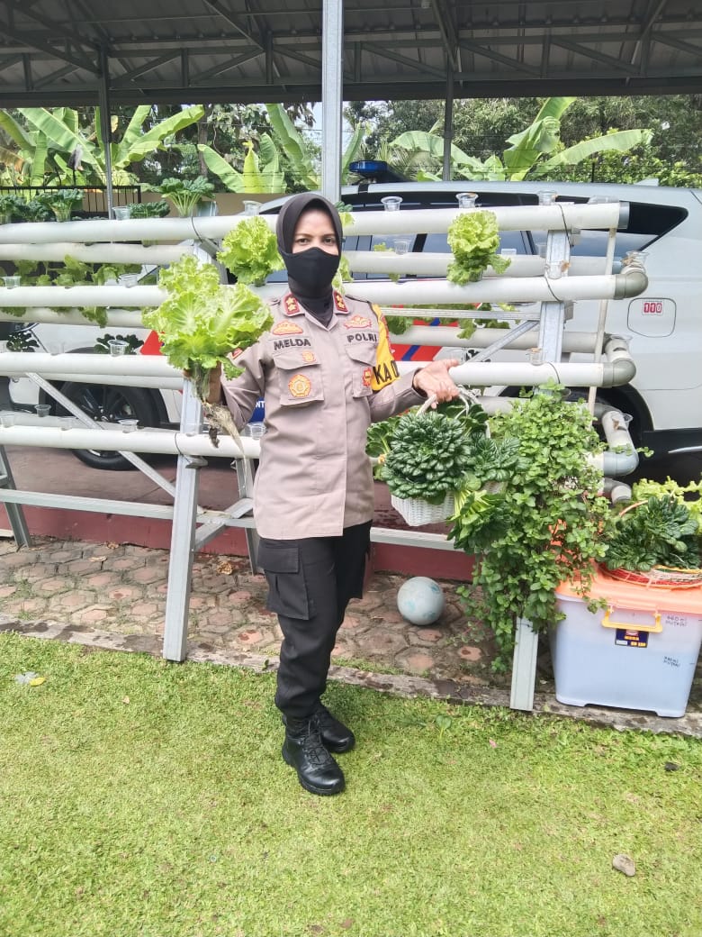 Berita Mapolres Banjar — Berlokasi di kediaman Kapolres Banjar Polda Jabar di Ling. Randegan 1 Desa Raharja Kec. Purwaharja Kota Banjar, Kapolres Banjar AKBP Melda Yanny, S.I.K.,M.H. bersama personil Polwan Polres Banjar panen sayuran yang ditanam dengan menggunakan teknik Hidroponik. (16/7/2020)