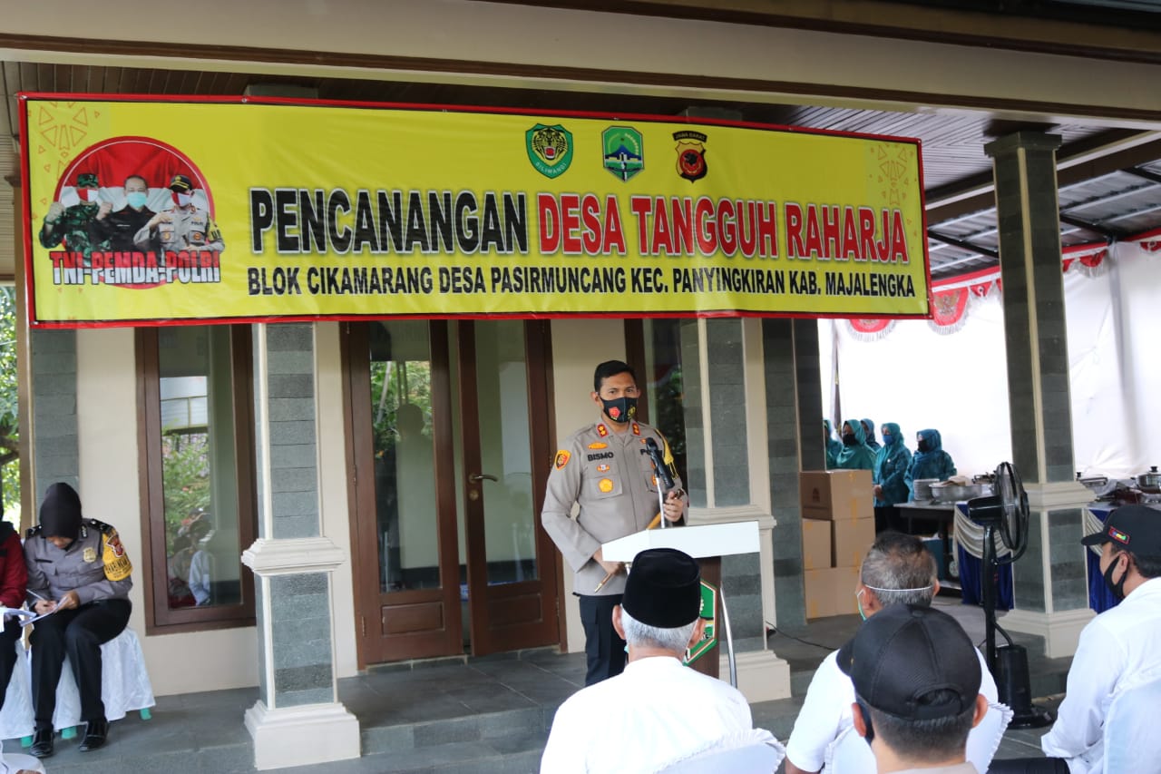 Kapolres Majalengka pada sambutannya menyampaikan menyampaikan kegiatan yang dilaksanakan dalam rangka Pencanangan Desa Tangguh Raharja Cegah Covid-19 di Wilayah Kabuoaten Majalengka khususnya di Desa Pasirmuncang Kecamatan Panyingkiran Kabupaten Majalengka.