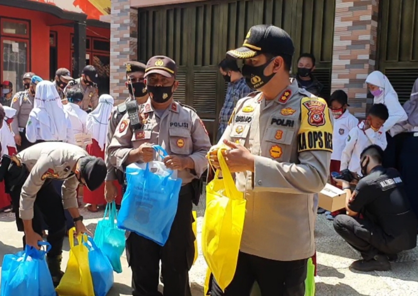 Kapolres Majalengka AKBP Dr.Bismo Teguh Prakoso didampingi Kasat Binmas IPTU Rudi Djunardi, Kapolsek Talaga AKP Agus Romi kembali melakukan giat bakti sosial dalam rangka Gerakan Bakti Sosial Peduli Covid-19, Sabtu (1/8/2020 ).