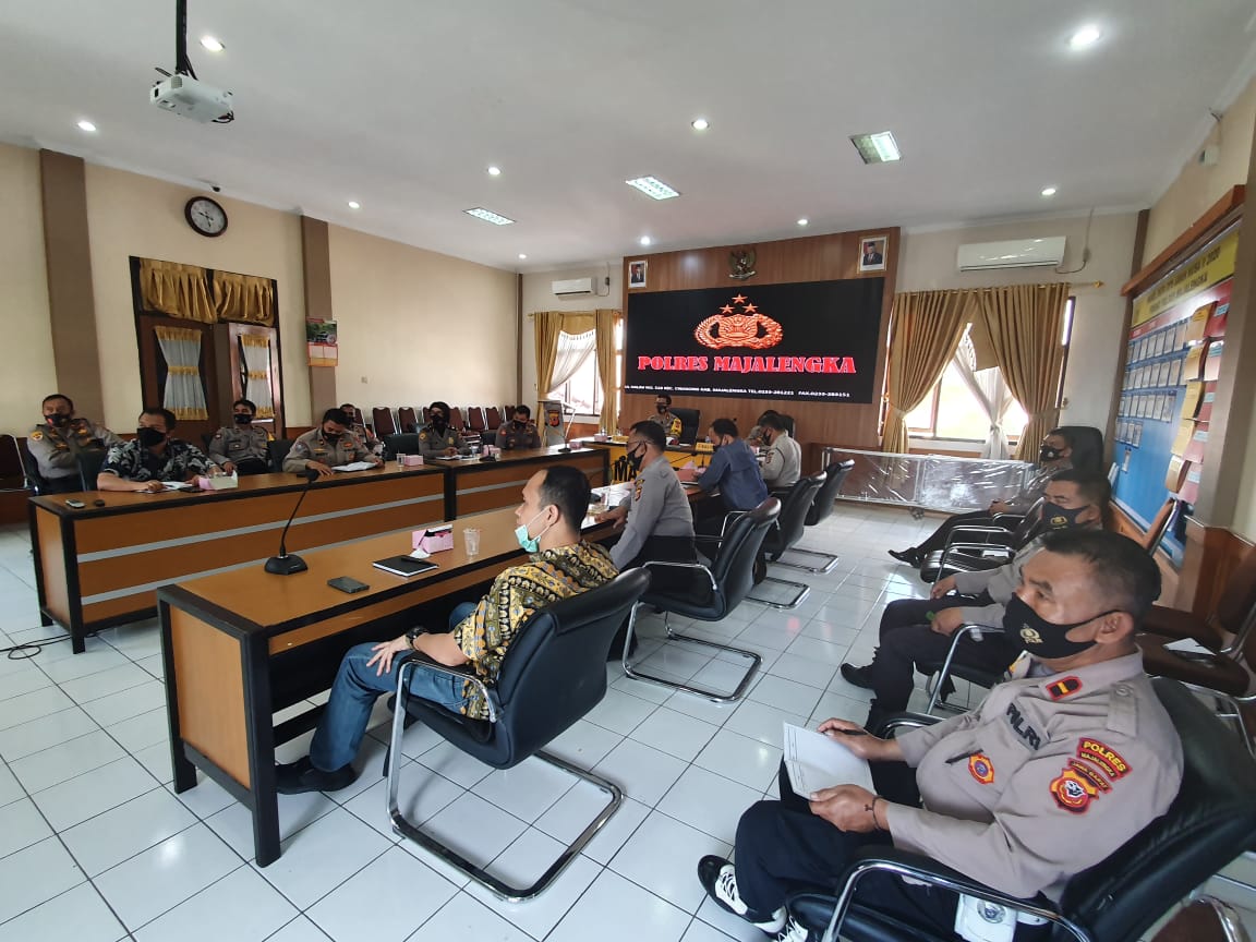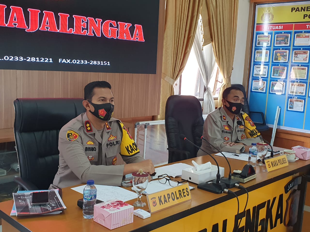 Kapolres Majalengka Didampingi Waka Polres Ikuti Vicon Anev Ops Aman Nusa II dan Satgas Nusantara Terkait Penanganan Covid-19