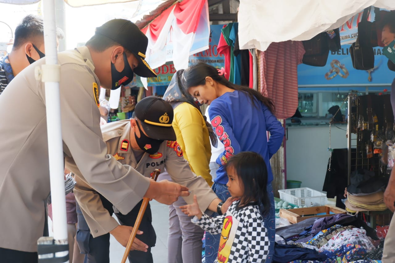 Orang no 1 di Polres Majalengka AKBP Dr.Bismo Teguh Prakoso mendatangi pasar Kadipaten merupakan salah satu aktivitas masyarakat yang dinilai sangat rentan menjadi klaster penularan Covid-19. menindak lanjuti Instruksi Presiden Nomor 6 tahun 2020 tentang Peningkatan Disiplin dan Penegakan Hukum Protokol Kesehatan dalam Pencegahan dan Pengendalian COVID-19 (Corona Virus Disease 2019) sekaligus mengkampanyekan.