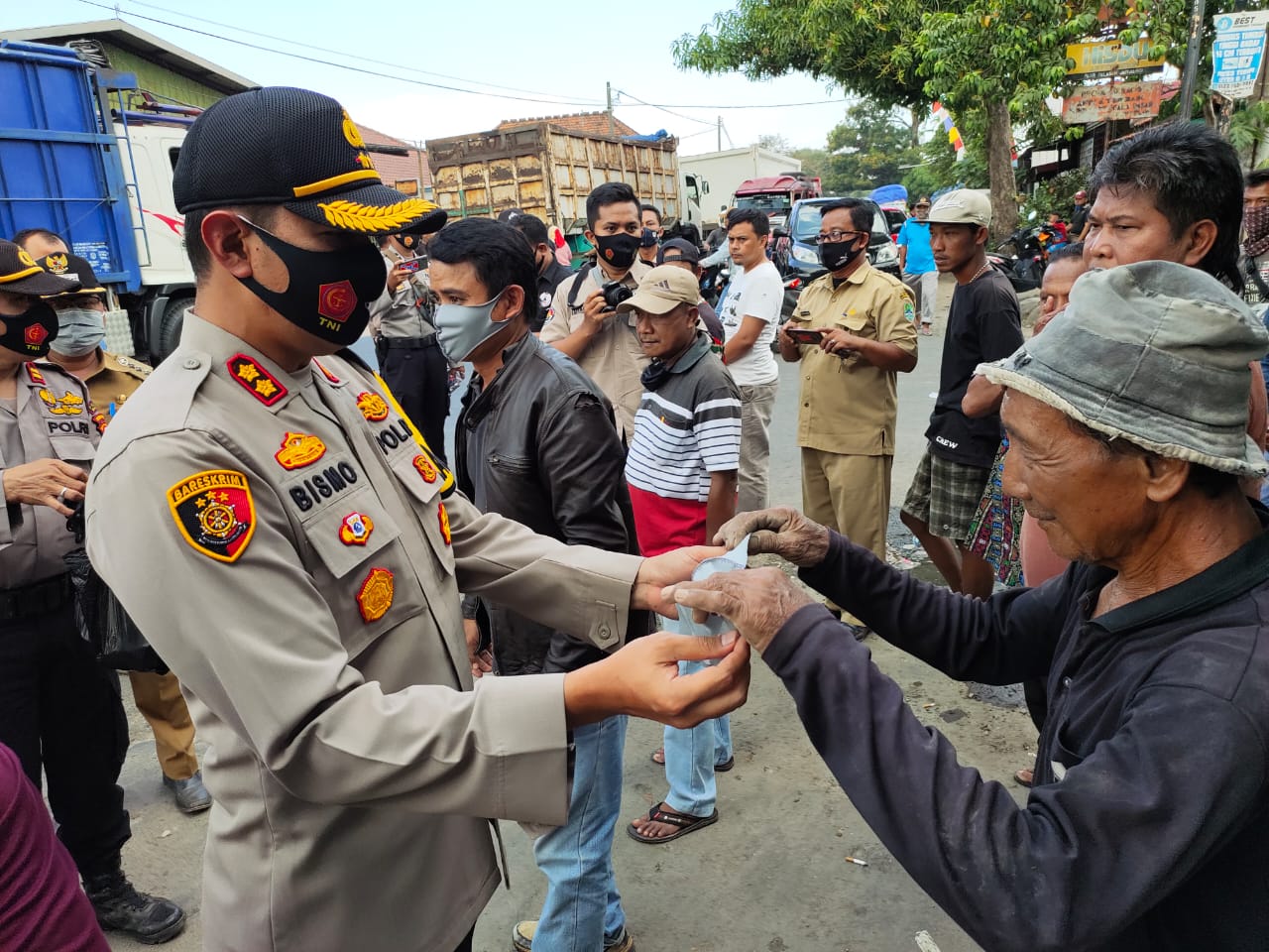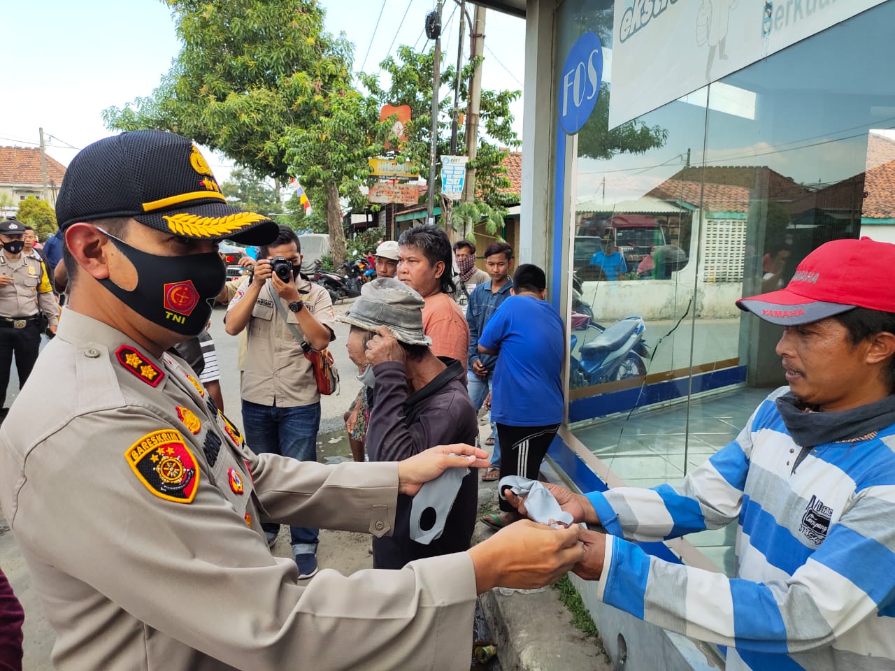 Kapolres Majalengka Dr. AKBP Bismo Teguh Prakoso menghimbau terkait pentingnya Protokol Kesehatan sekaligus membagikan Masker sebanyak 250 buah kepada Masyarakat di sekitar lokasi kegiatan di fase Adaptasi Kebiasaan Baru (AKB) / New Normal Wil. Kab. Majalengka dengan tujuan untuk mengajak masyarakat lebih disiplin salah satunya dengan menggunakan masker pada setiap aktifitas terutama pada saat keluar rumah