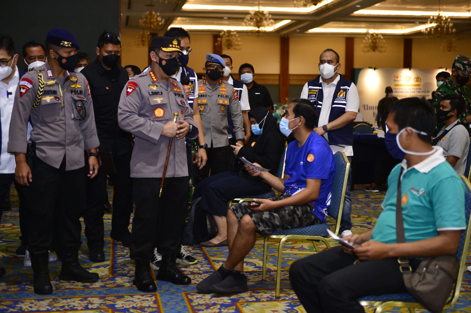 Selain melepas bus vaksinasi keliling, Sigit juga meninjau kegiatan vaksinasi massal yang diselenggarakan oleh KADIN bersama TNI-Polri di Gedung JCC, Jakarta Pusat.