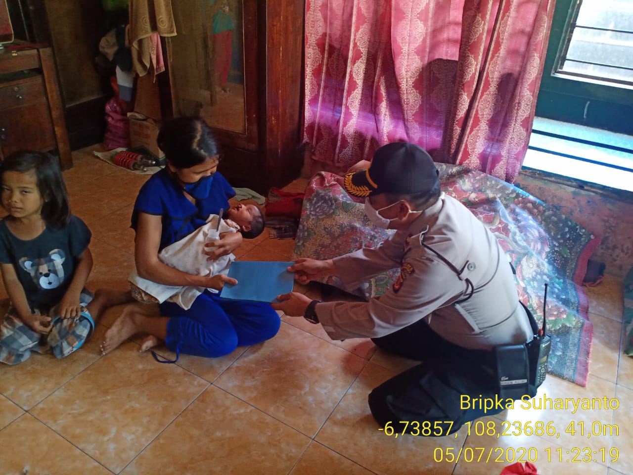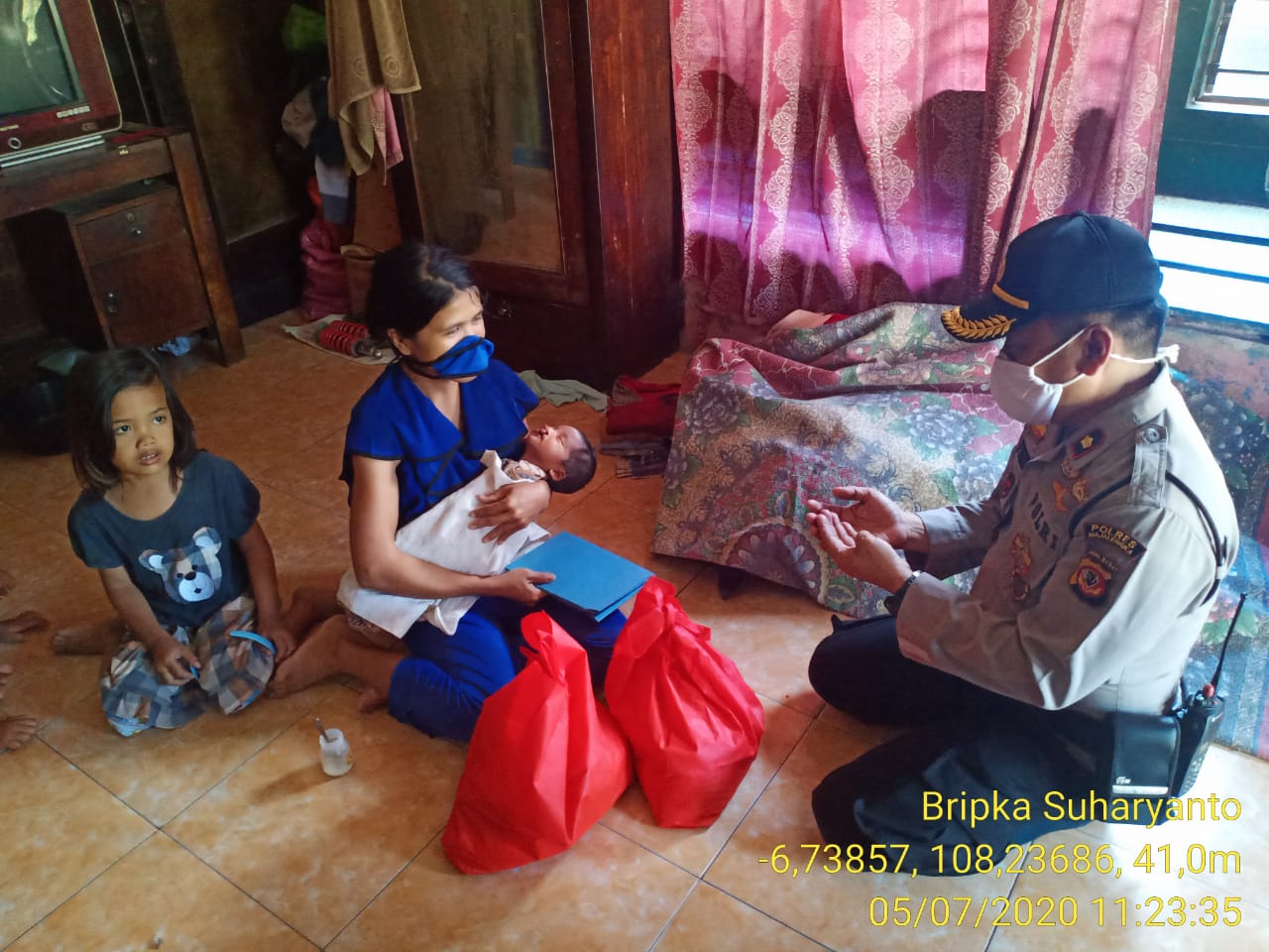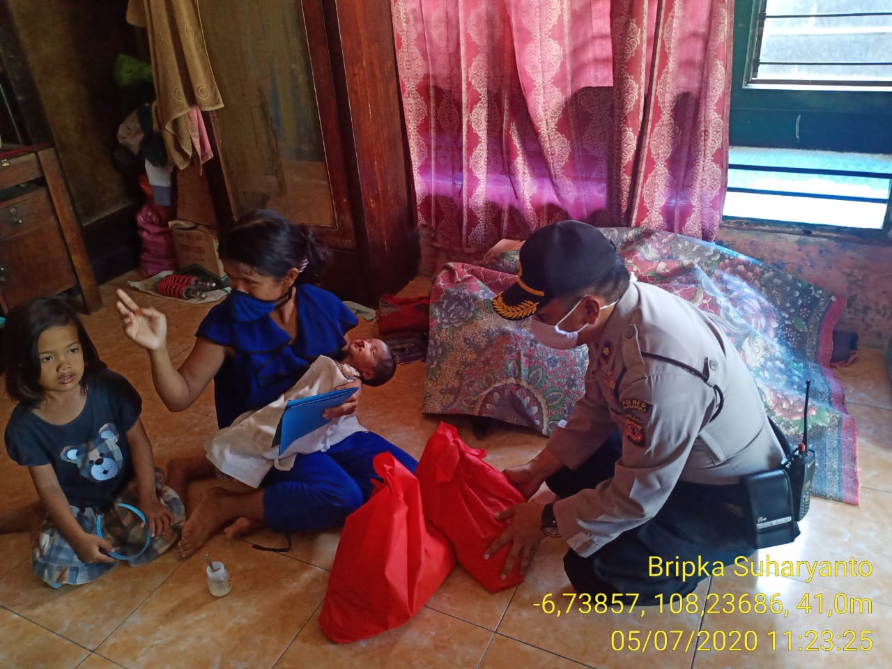 Berita Mapolres Majalengka — Program Peduli Polsek Jatiwangi Polres Majalengka Polda Jawa Barat dipimpin langsung Kapolsek Jatiwangi KOMPOL Asep S.Fiqih menjenguk Hadi Herlangga Penderita Bibir Sumbing, bayi baru lahir anak dari Bapak Ade warga Blok Cibogo Rt 01/15 Desa Burujul Kulon Kecamatan Jatiwangi Kabupaten Majalengka, Minggu (5/6/2020).