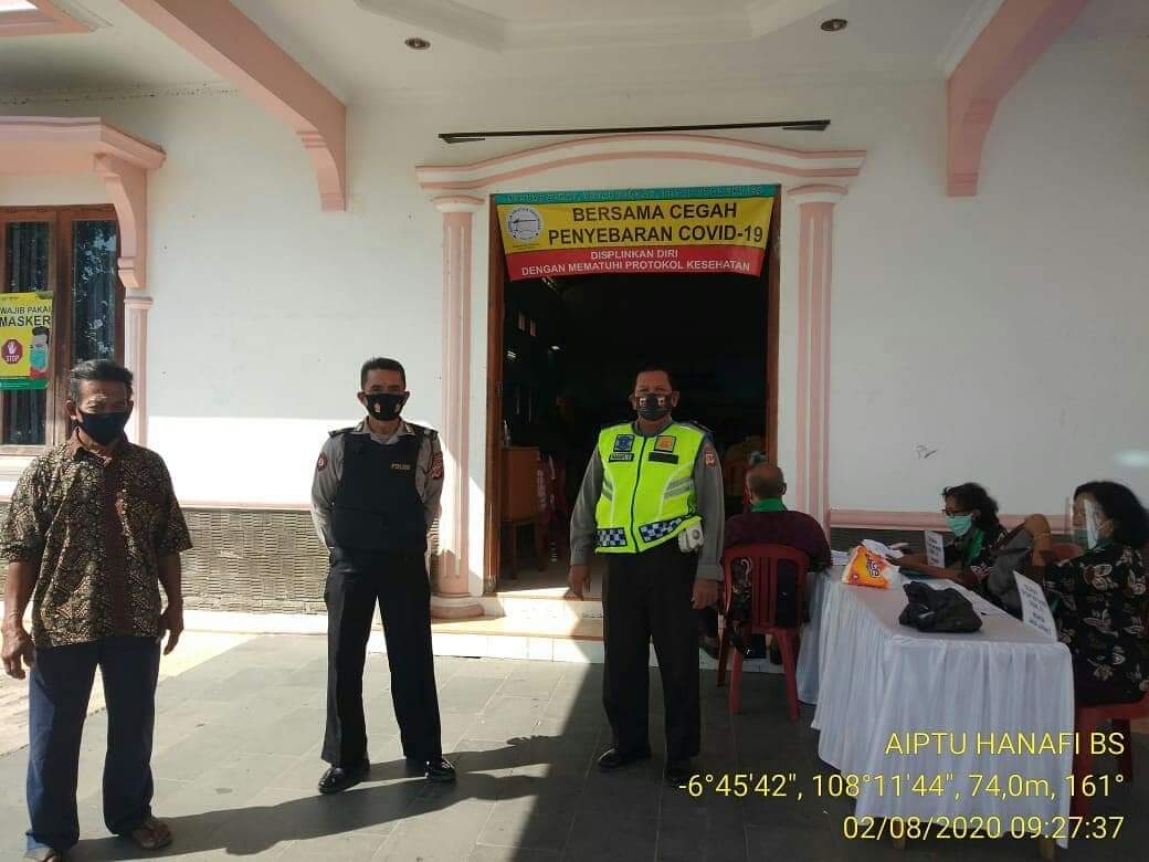 Berita Mapolres Majalengka–Supaya umat Nasrani dapat melaksanakan kegiatan ibadah minggu dengan aman dan nyaman, Polsek Kadipaten Polres Majalengka memberikan pengamanan saat para jamaah sedang melaksanakan ibadah minggu di sejulah gereja yakni Gereja Kristen Pasundan Cideres Desa CIpaku, Gereja Penyebaran Injil dan Gereja Pantekosta Kecamatan Kadipaten Kabupaten Majalengka, Minggu (2/8/2020).