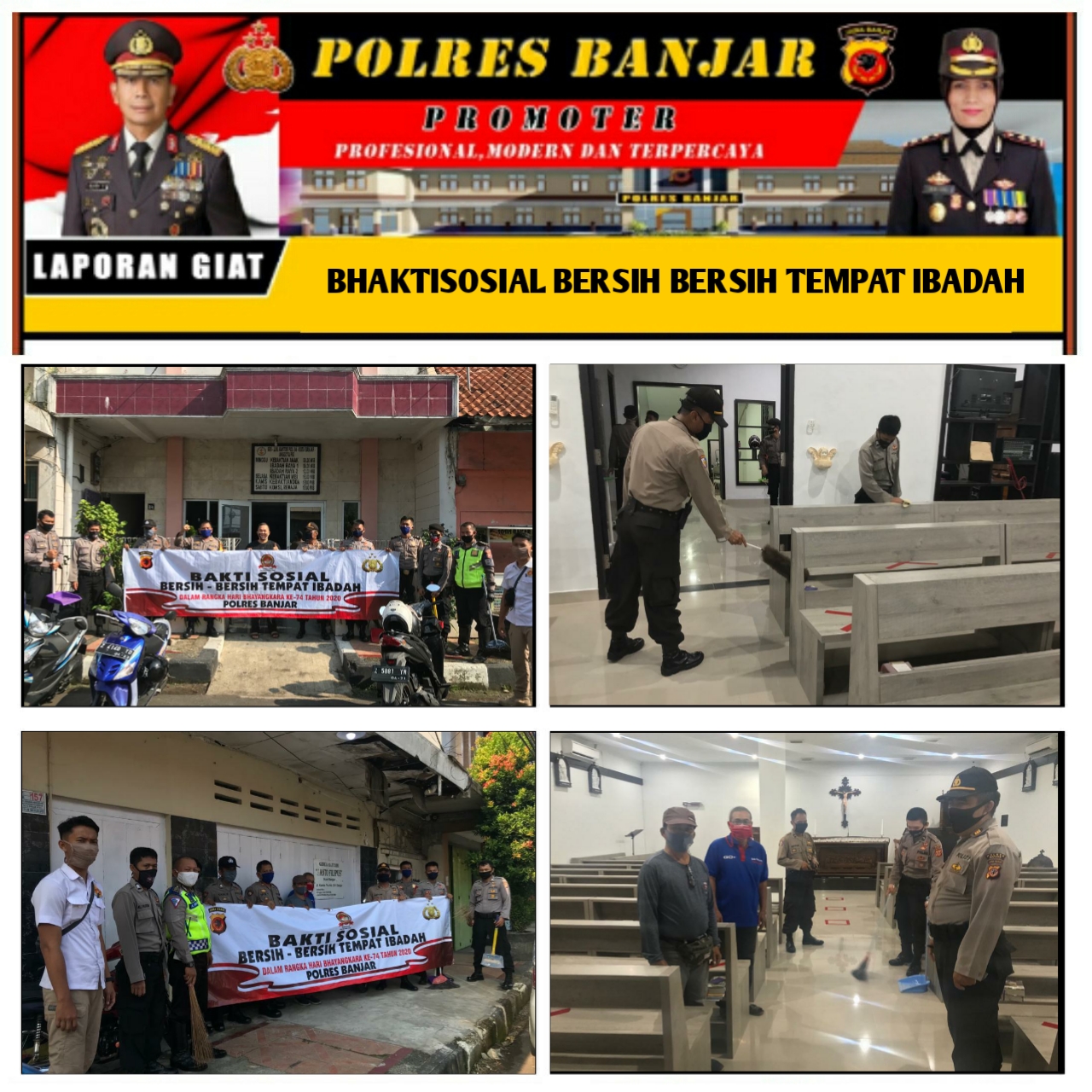 Korve ataupun bersih bersih dilakukan ditempat ibadah gereja yang berada diwilayah Kota Banjar dan sekaligus untuk menyampaikan himbauan, edukasi, apa yang menjadi arahan Kapolres Banjar AKBP Melda Yanni, S.I.K, M.H. Menjelang New Normal / Adaptasi Kebiasaan Baru diwilayah Kota Banjar diharapkan dalam pelaksanaan ibadah digereja haruslah mematuhi apa yang menjadi anjuran protokol kesehatan yaitu menjaga jarak, memakai masker dan siapkan, ditempatkan untuk mencuci tangan pakai sabun diair yang mengalir dan juga sebagai bentuk kepedulian Polri / Polres Banjar kepada warga masyarakat ke semua kalangan yang ada diwilayah Kota Banjar apa yang menjadi tema dalam Hari Bhayangkara Ke 74 Tahun yang tepatnya tanggal 1 Juli 2020 “Kamtibmas Kondusif Masyarakat Semakin Produktif,”ungkap AKP Cecep Edi Sulaeman, S.IP.
